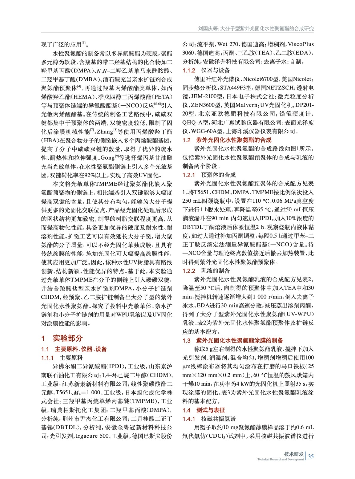 大分子型紫外光固化水性聚氨酯的合成研究