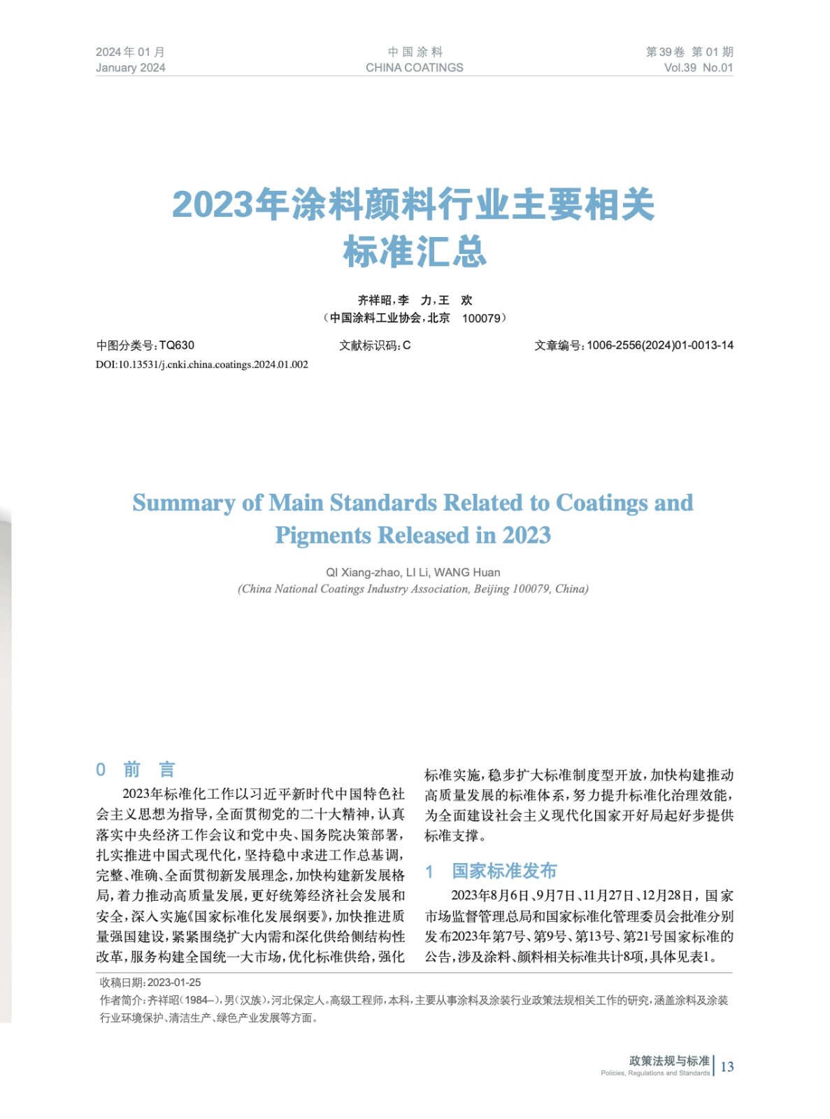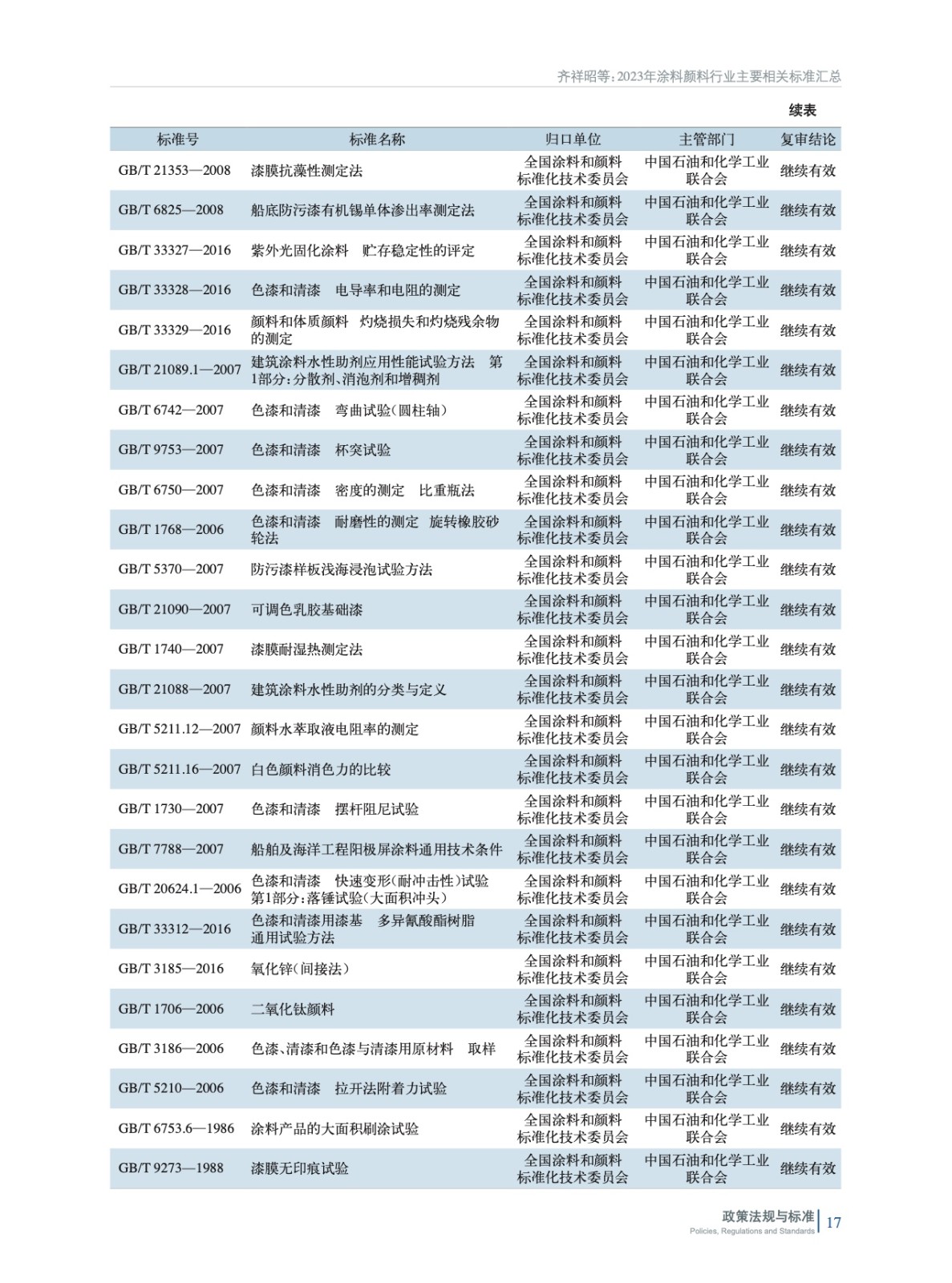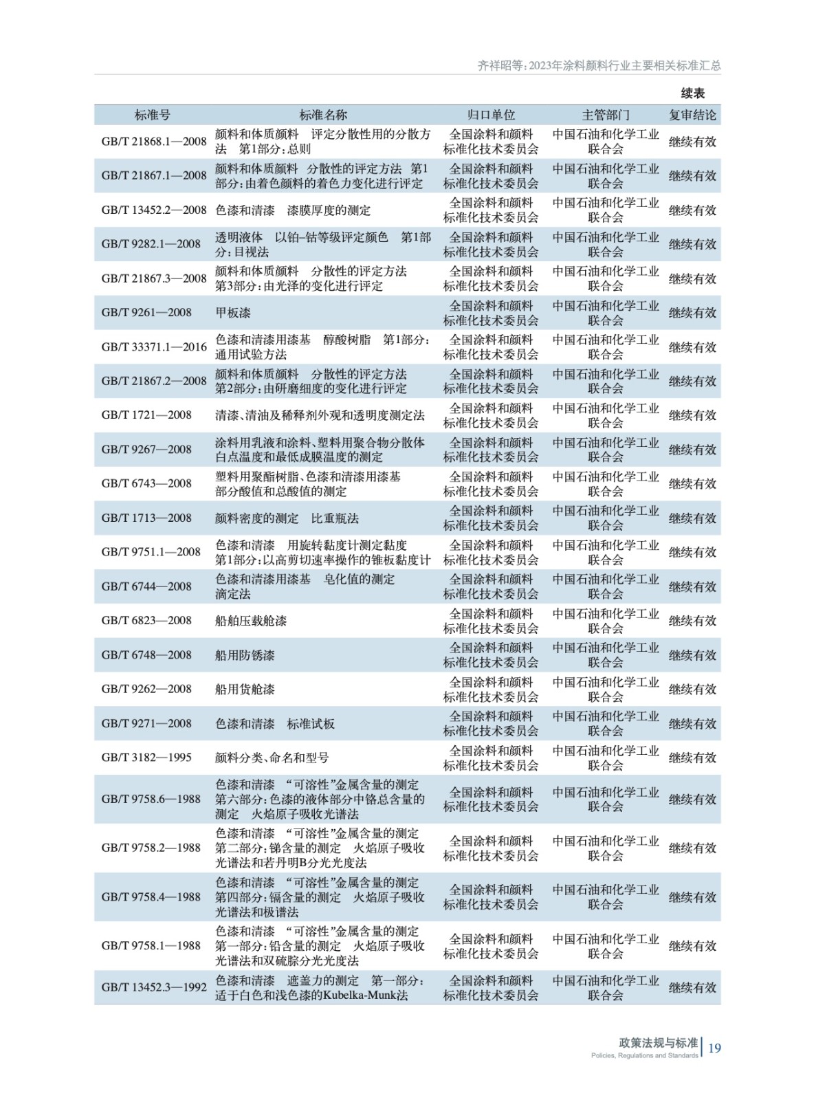 2023年涂料顏料行業(yè)主要相關(guān)標(biāo)準(zhǔn)匯總