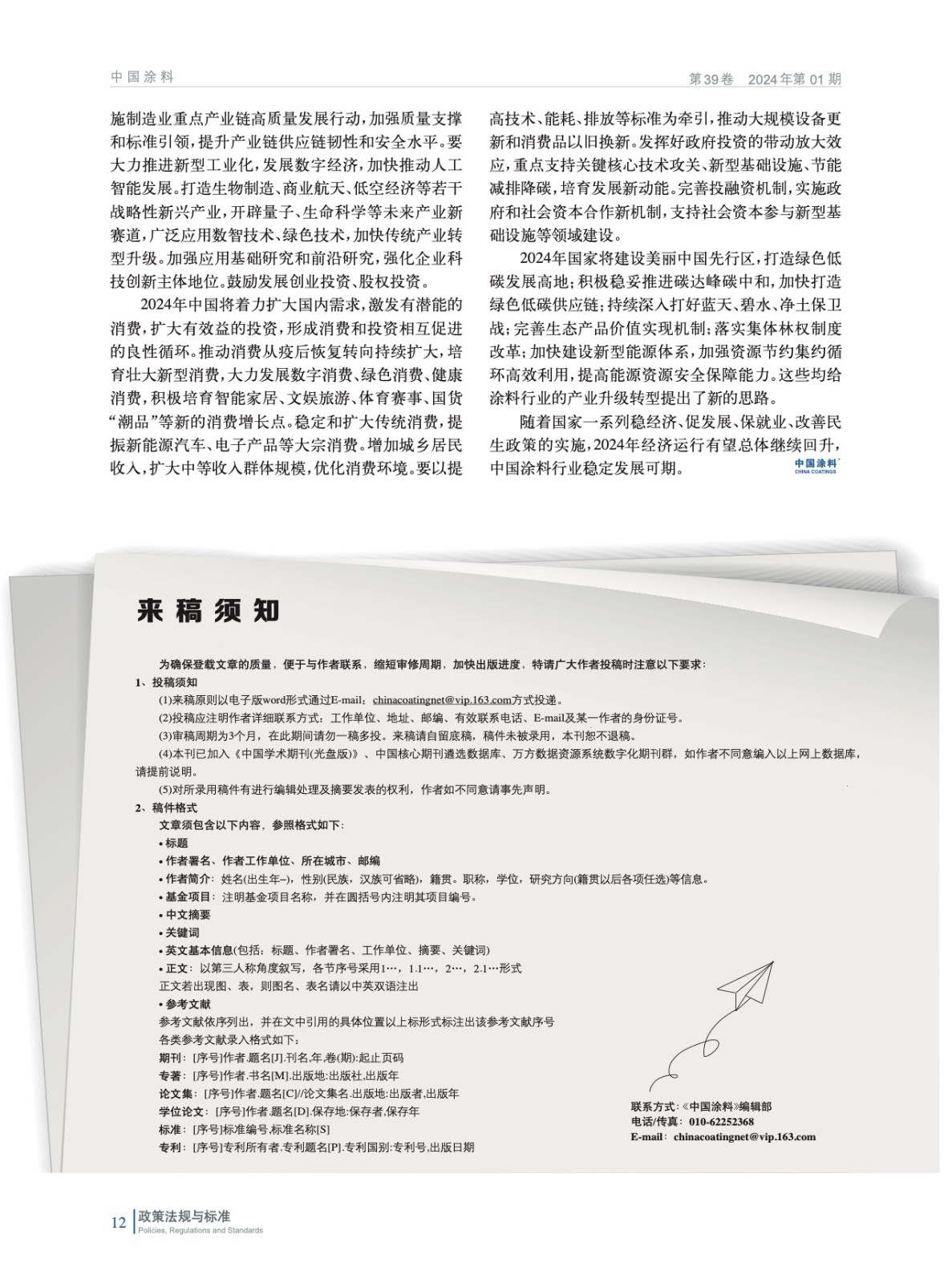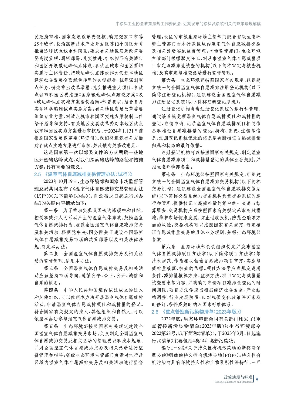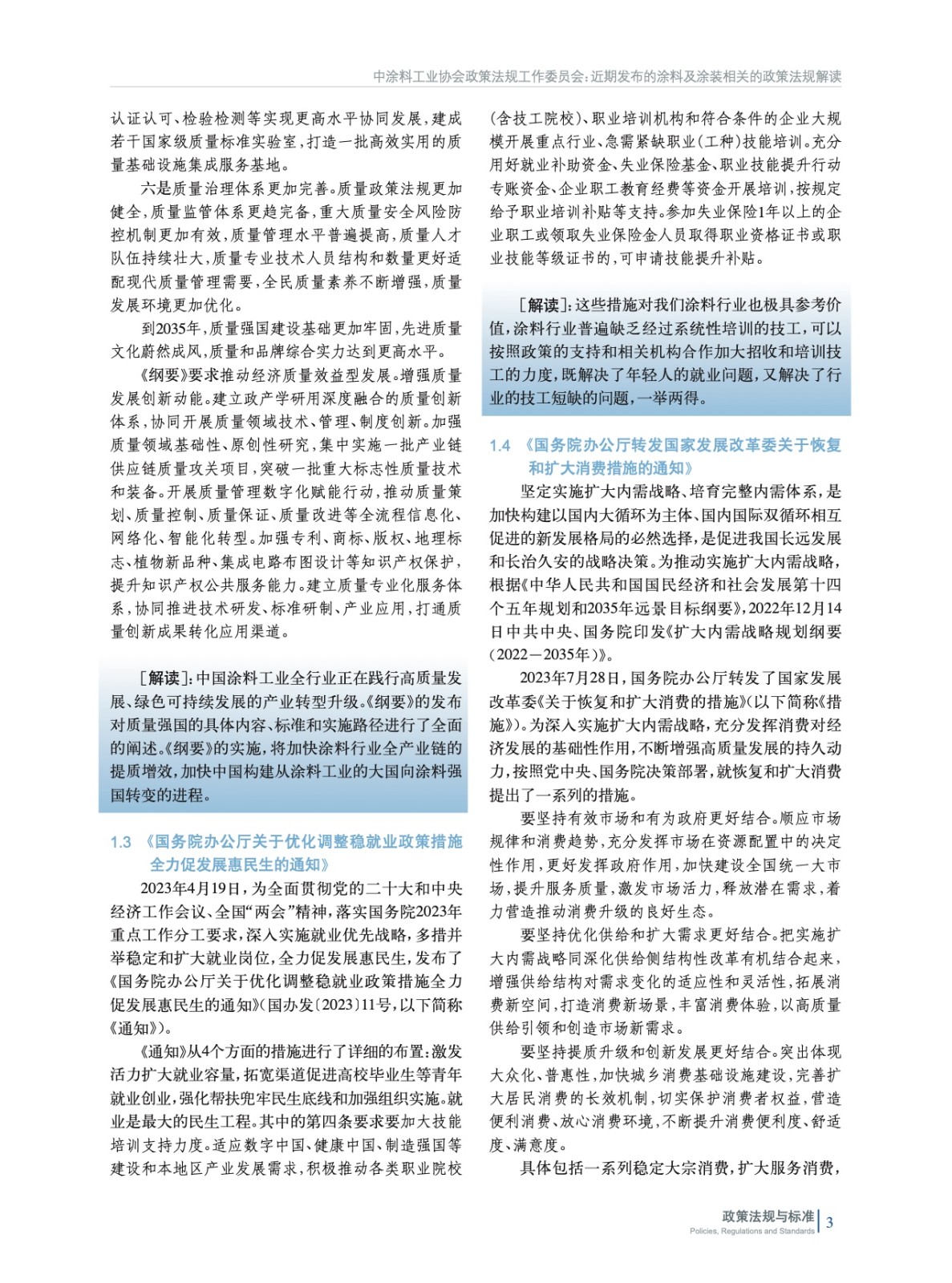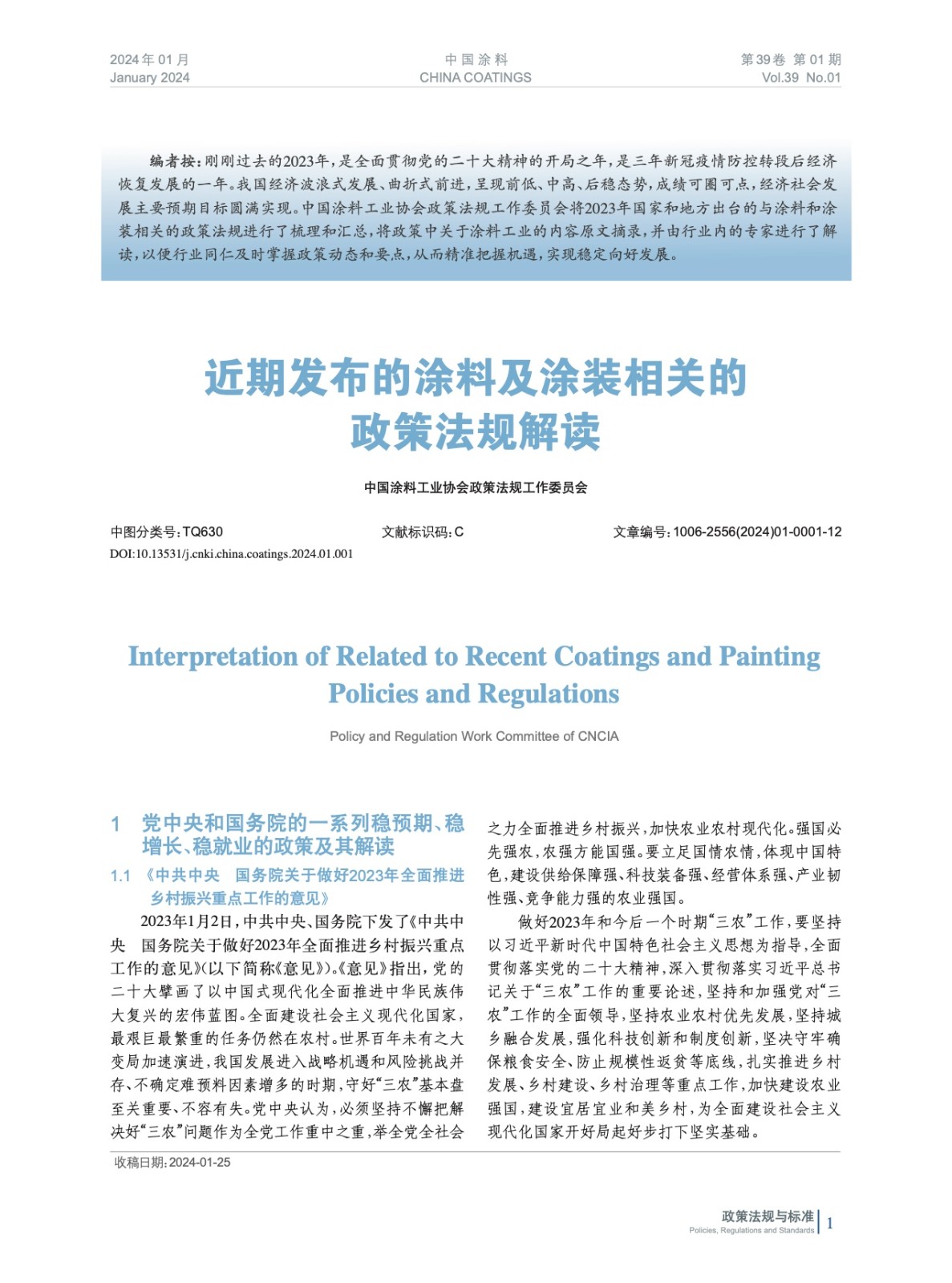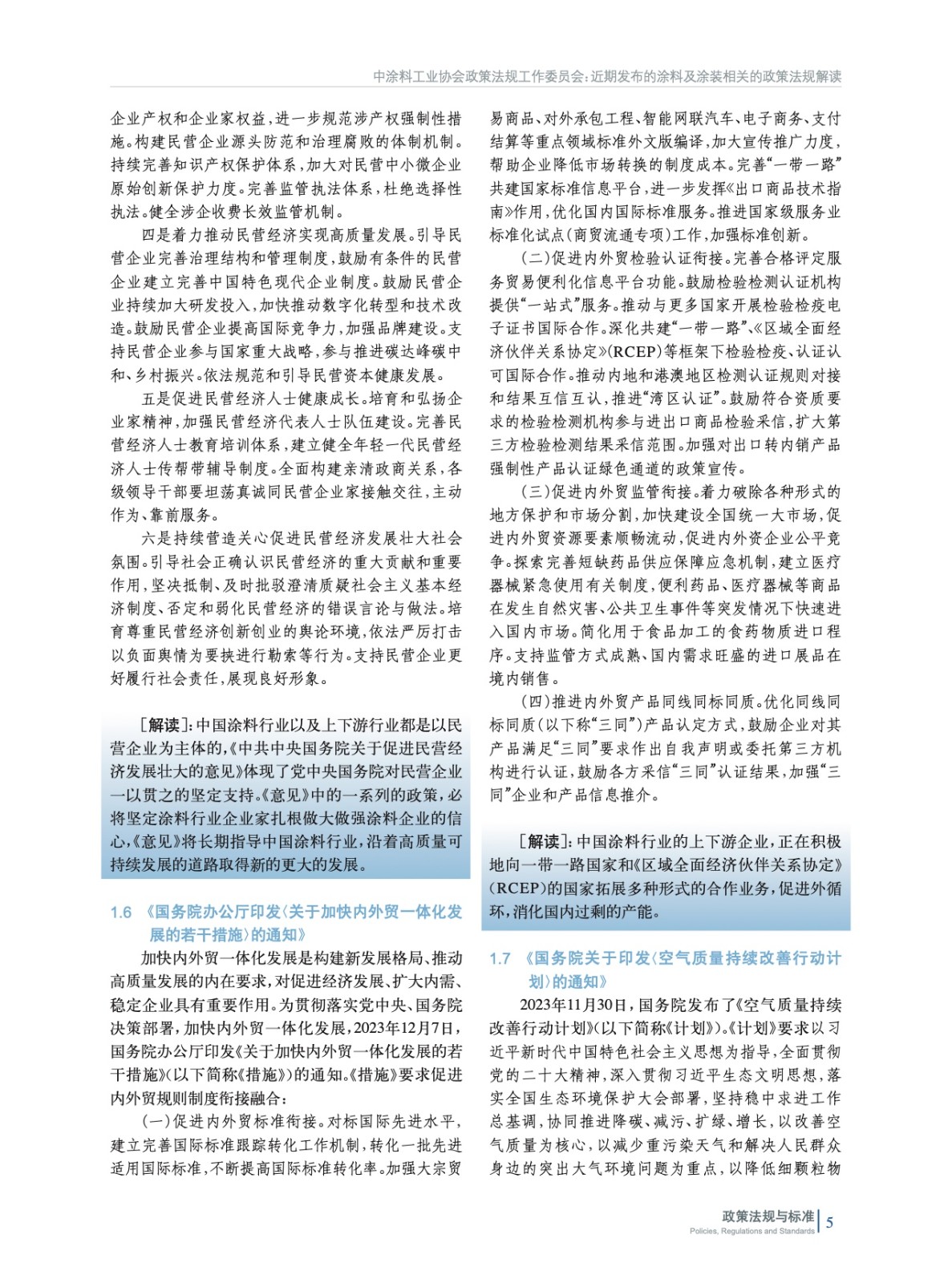 摘要:剛剛過去的2023年,是全面貫徹黨的二十大精神的開局之年,是三年新冠疫情防控轉(zhuǎn)段后經(jīng)濟恢復(fù)發(fā)展的一年。我國經(jīng)濟波浪式發(fā)展、曲折式前進(jìn),呈現(xiàn)前低、中高、后穩(wěn)態(tài)勢,15660成績可圈可點,經(jīng)濟社會發(fā)展主要預(yù)期目標(biāo)圓滿實現(xiàn)。中國涂料工業(yè)協(xié)會政策法規(guī)工作委員會將2023年國家和地方出臺的與涂料和涂裝相關(guān)的政策法規(guī)進(jìn)行了梳理和匯總,將政策中關(guān)于涂料工業(yè)的內(nèi)容原文摘錄,并由行業(yè)內(nèi)的專家進(jìn)行了解讀,以便行業(yè)同仁及時掌握政策動態(tài)和要點,從而精準(zhǔn)把握機遇,實現(xiàn)穩(wěn)定向好發(fā)展。