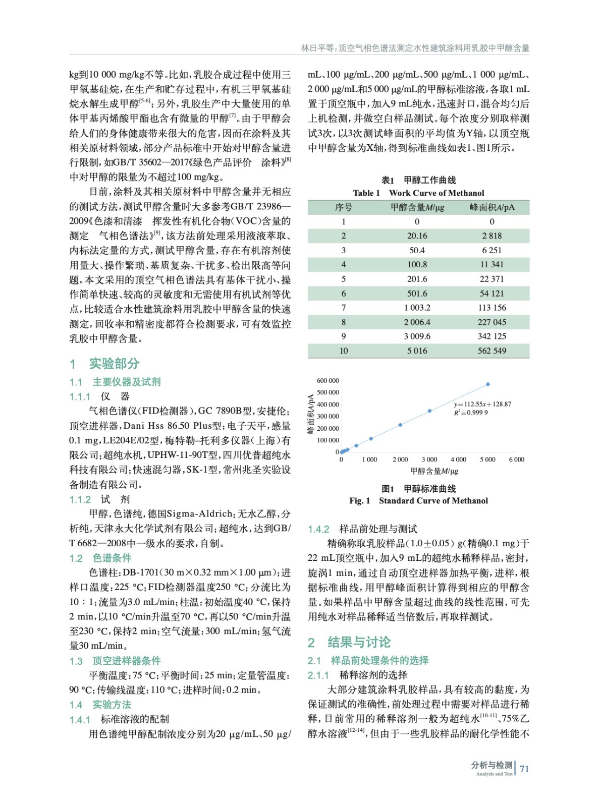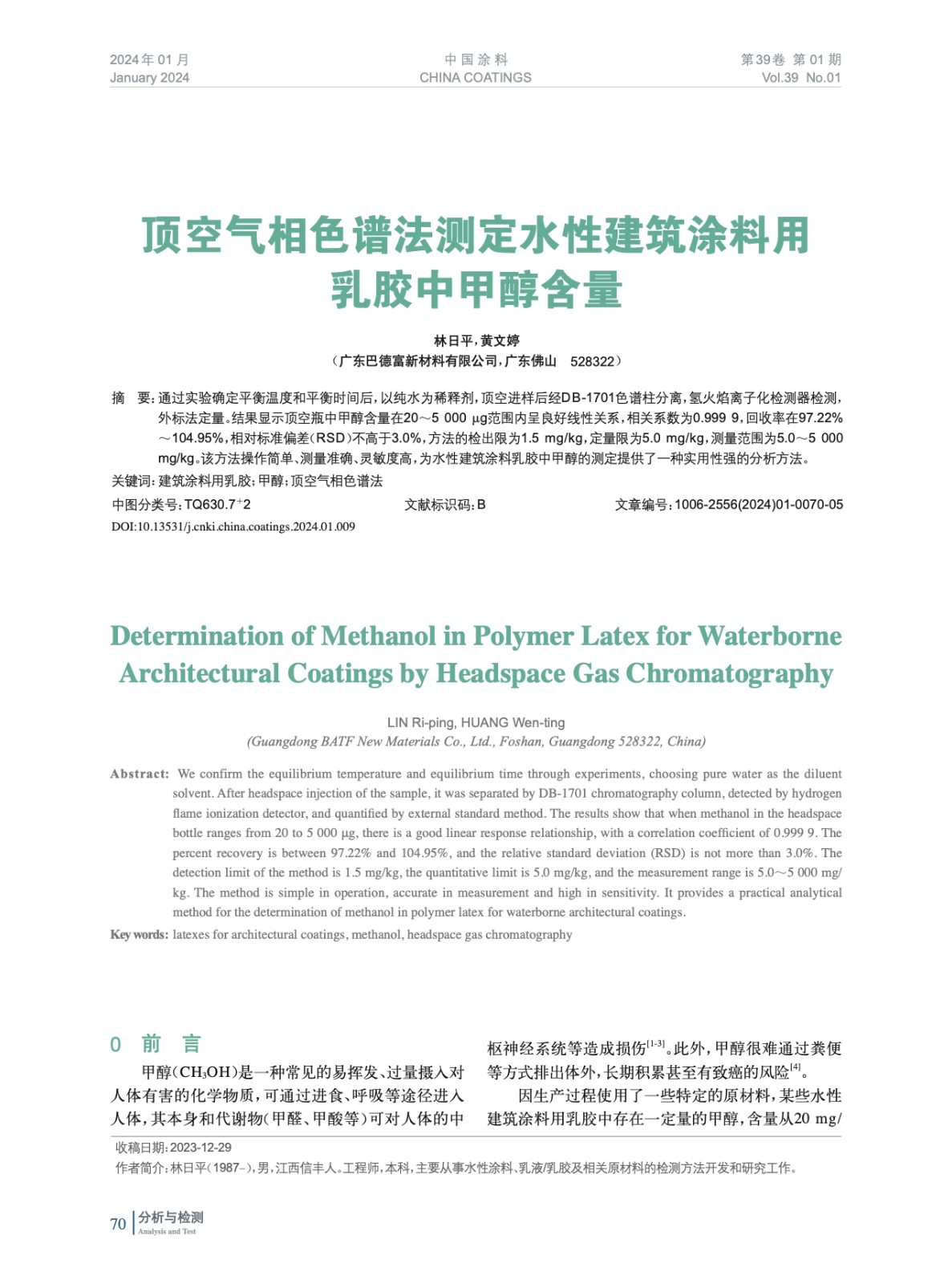 頂空氣相色譜法測(cè)定水性建筑涂料用乳膠中甲醇含量