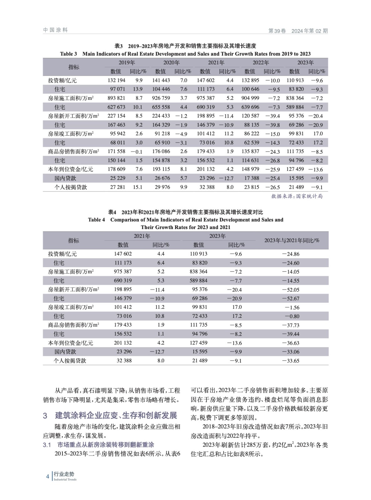 摘要:介紹了2023年我國(guó)房地產(chǎn)行業(yè)和建筑涂料市場(chǎng)發(fā)展?fàn)顩r,總結(jié)了建筑涂料2023年產(chǎn)銷現(xiàn)狀,指出企業(yè)面對(duì)市場(chǎng)緊縮,市場(chǎng)重點(diǎn)應(yīng)從新房涂裝轉(zhuǎn)移到翻新重涂,解決好外墻防水問題,向人工智能方向發(fā)展,并對(duì)2024年建筑涂料市場(chǎng)進(jìn)行了預(yù)測(cè)。