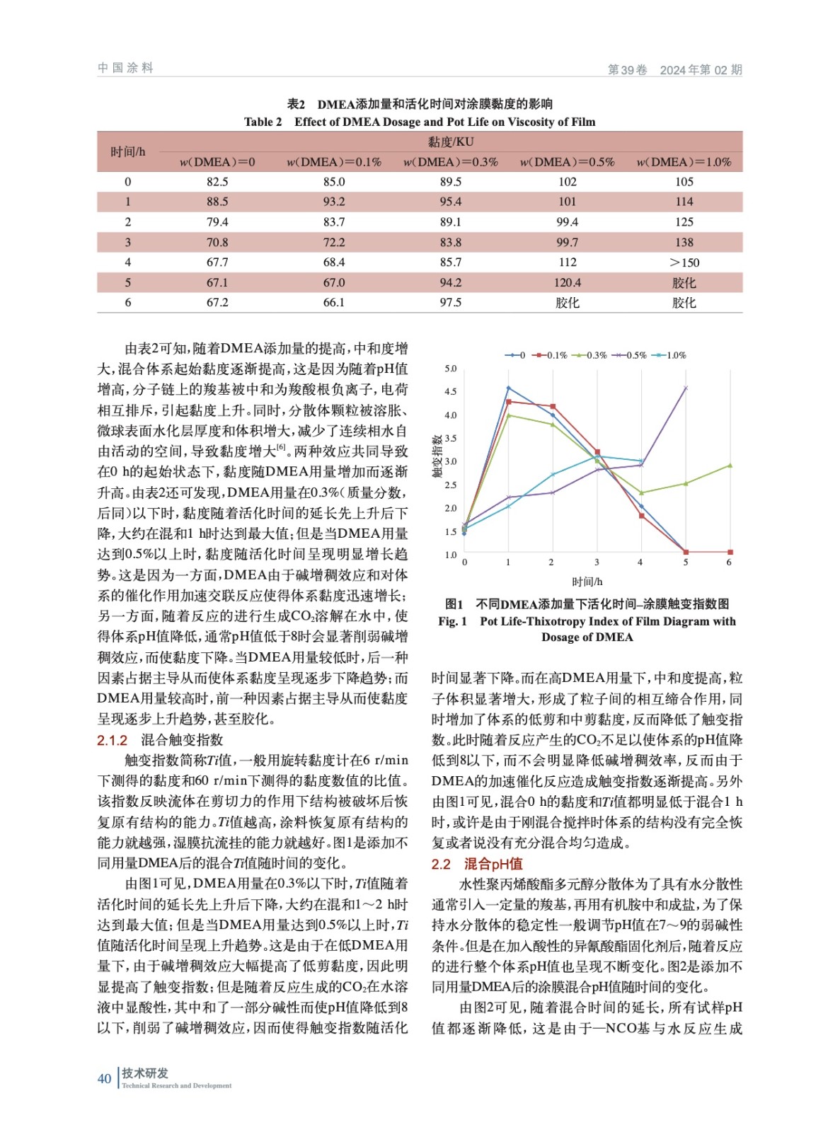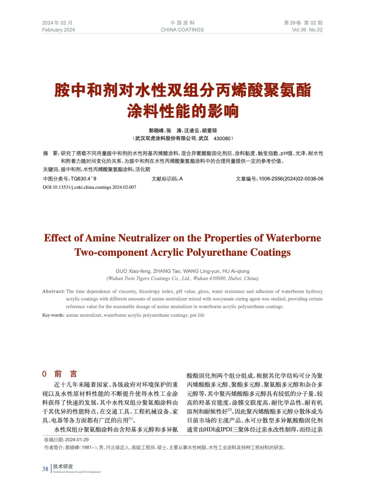 摘要:研究了搭載不同用量胺中和劑的水性羥基丙烯酸涂料,混合異氰酸酯固化劑后,涂料黏度、觸變指數(shù)、pH值、光澤、耐水性和附著力隨時(shí)間變化的關(guān)系,為胺中和劑在水性丙烯酸聚氨酯涂料中的合理用量提供一定的參考價(jià)值。