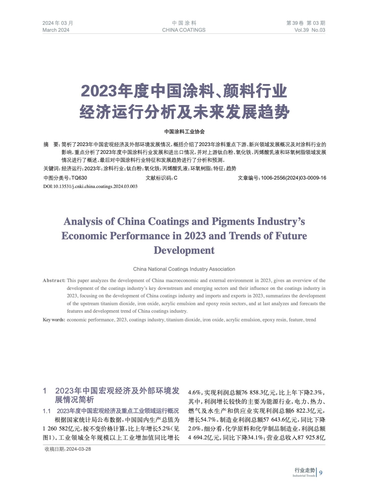 2023年度中國(guó)涂料、顏料行業(yè)經(jīng)濟(jì)運(yùn)行分析及未來(lái)發(fā)展趨勢(shì)