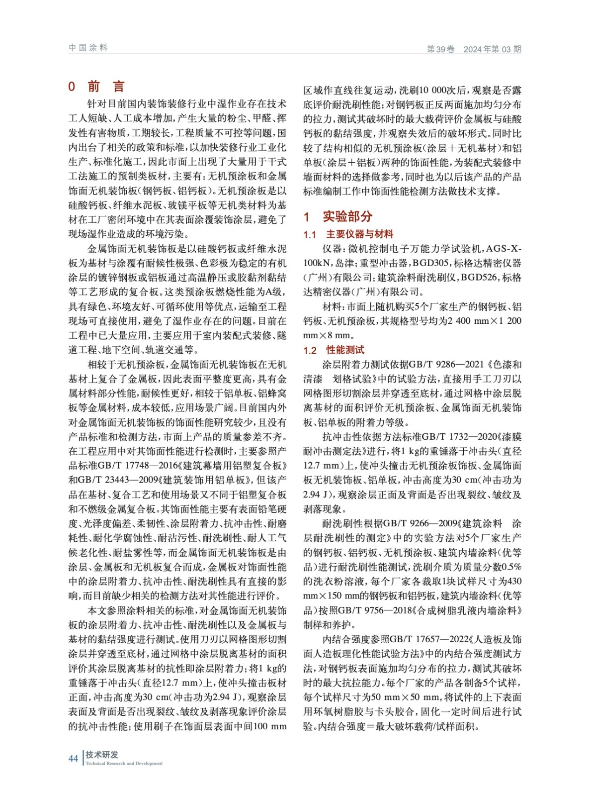 金屬飾面無機裝飾板部分飾面性能研究