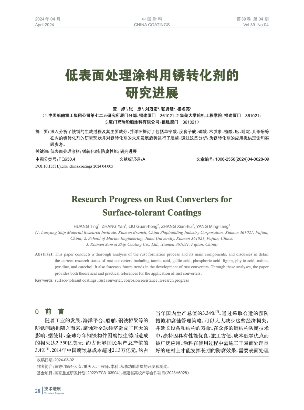 本文系作者@黃 婷,張 彥,劉冠宏,張賢慧,楊名亮 授權(quán)中國涂料網(wǎng)發(fā)表,并經(jīng)中國涂料網(wǎng)編輯,未經(jīng)允許不得轉(zhuǎn)載,如需轉(zhuǎn)載請聯(lián)系chinacoatingnet@vip.163.com