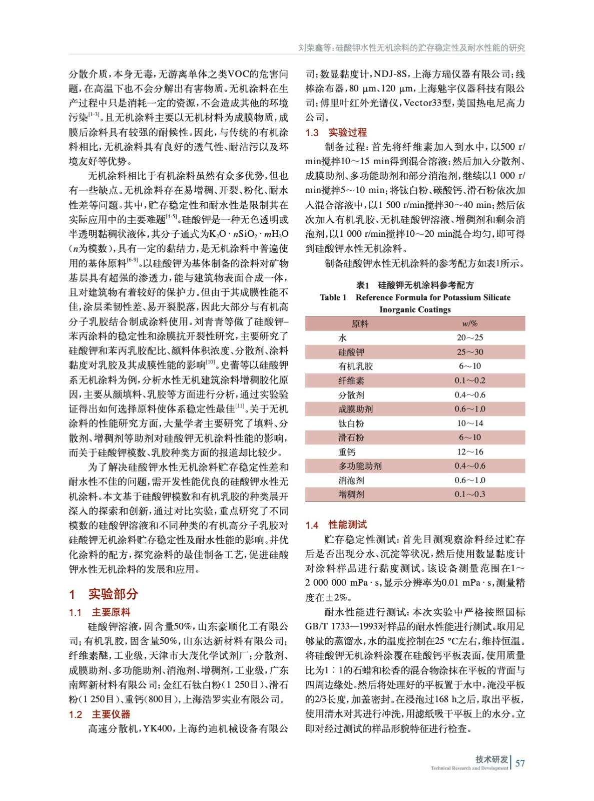 硅酸鉀水性無機涂料的貯存穩(wěn)定性及耐水性能的研究