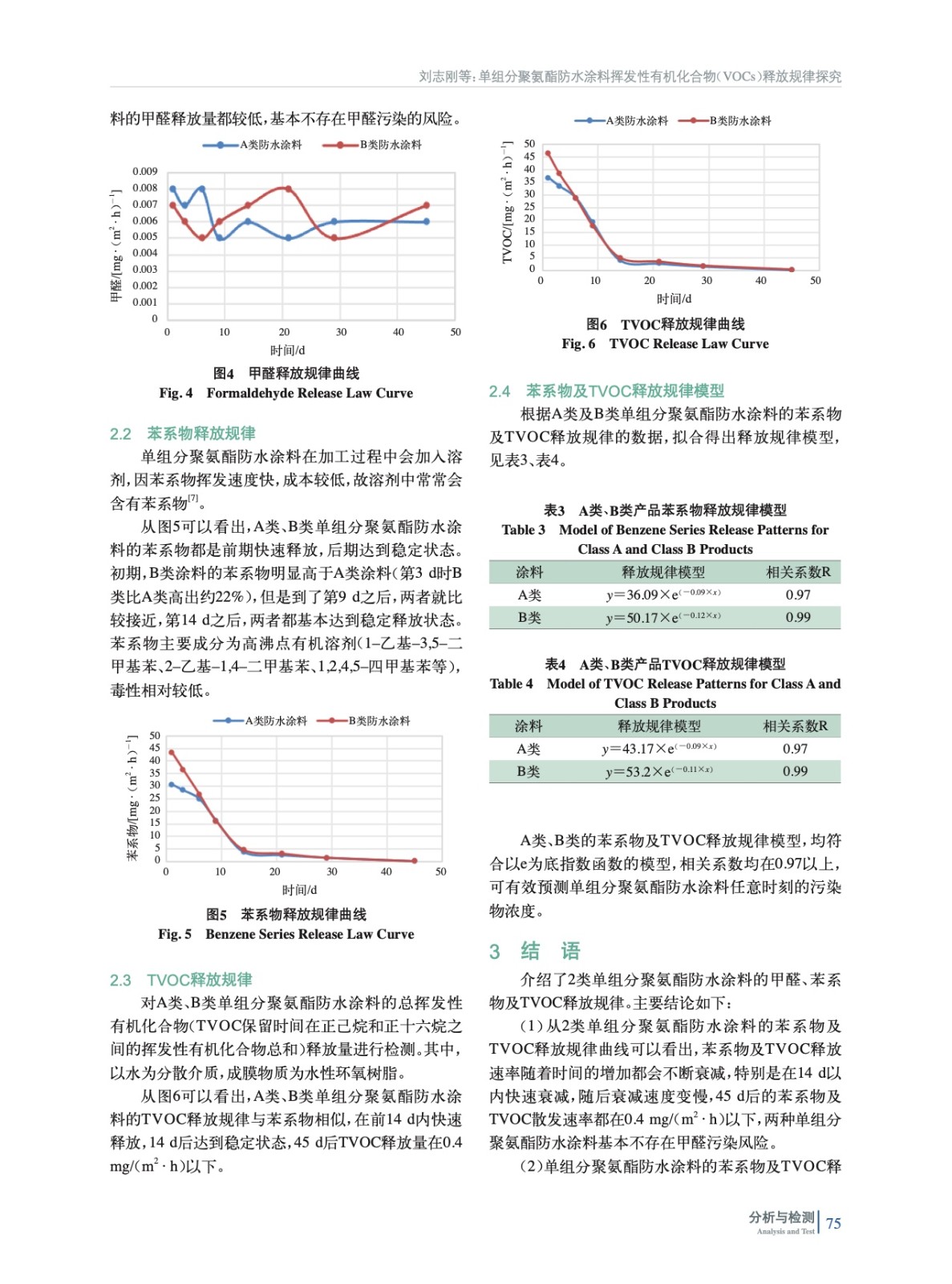 摘要:選取了目前工程上常用的單組分聚氨酯防水涂料作為測(cè)試對(duì)象,應(yīng)用環(huán)境艙法測(cè)試試樣45 d的揮發(fā)性有機(jī)化合物(VOCs)釋放規(guī)律。實(shí)驗(yàn)結(jié)果表明,所選試樣的揮發(fā)性有機(jī)化合物(VOCs)釋放速率隨著時(shí)間的延長(zhǎng)而降低,在14 d內(nèi)快速衰減,45 d時(shí)有害物質(zhì)的釋放速率處于較低水平。此研究對(duì)于指導(dǎo)工程現(xiàn)場(chǎng)單組分聚氨酯防水涂料的施工及保障室內(nèi)空氣質(zhì)量提供了數(shù)據(jù)支撐。苯系物及TVOC釋放規(guī)律符合指數(shù)模型y=A×e(-B×x)。