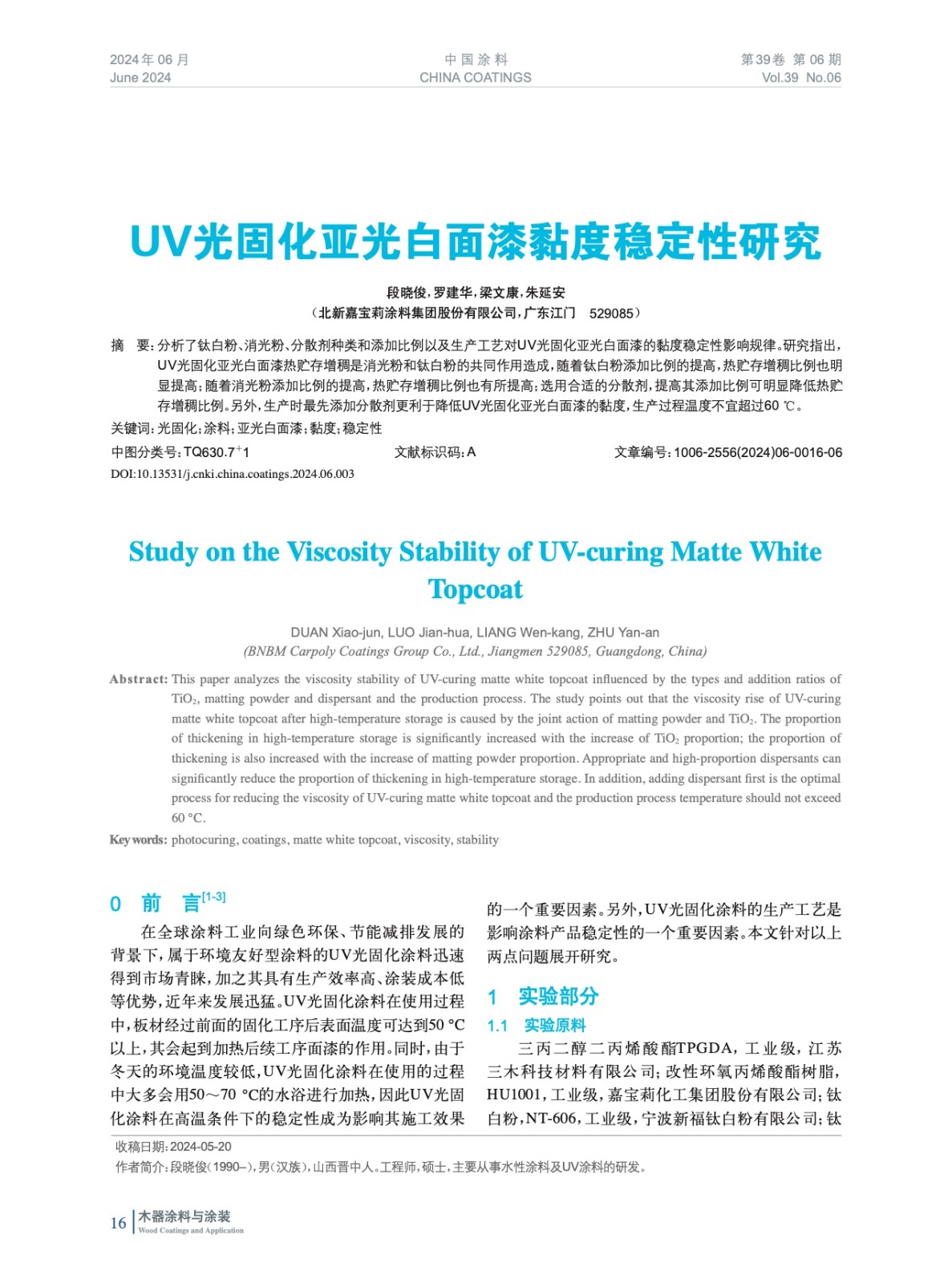UV光固化亞光白面漆黏度穩(wěn)定性研究
