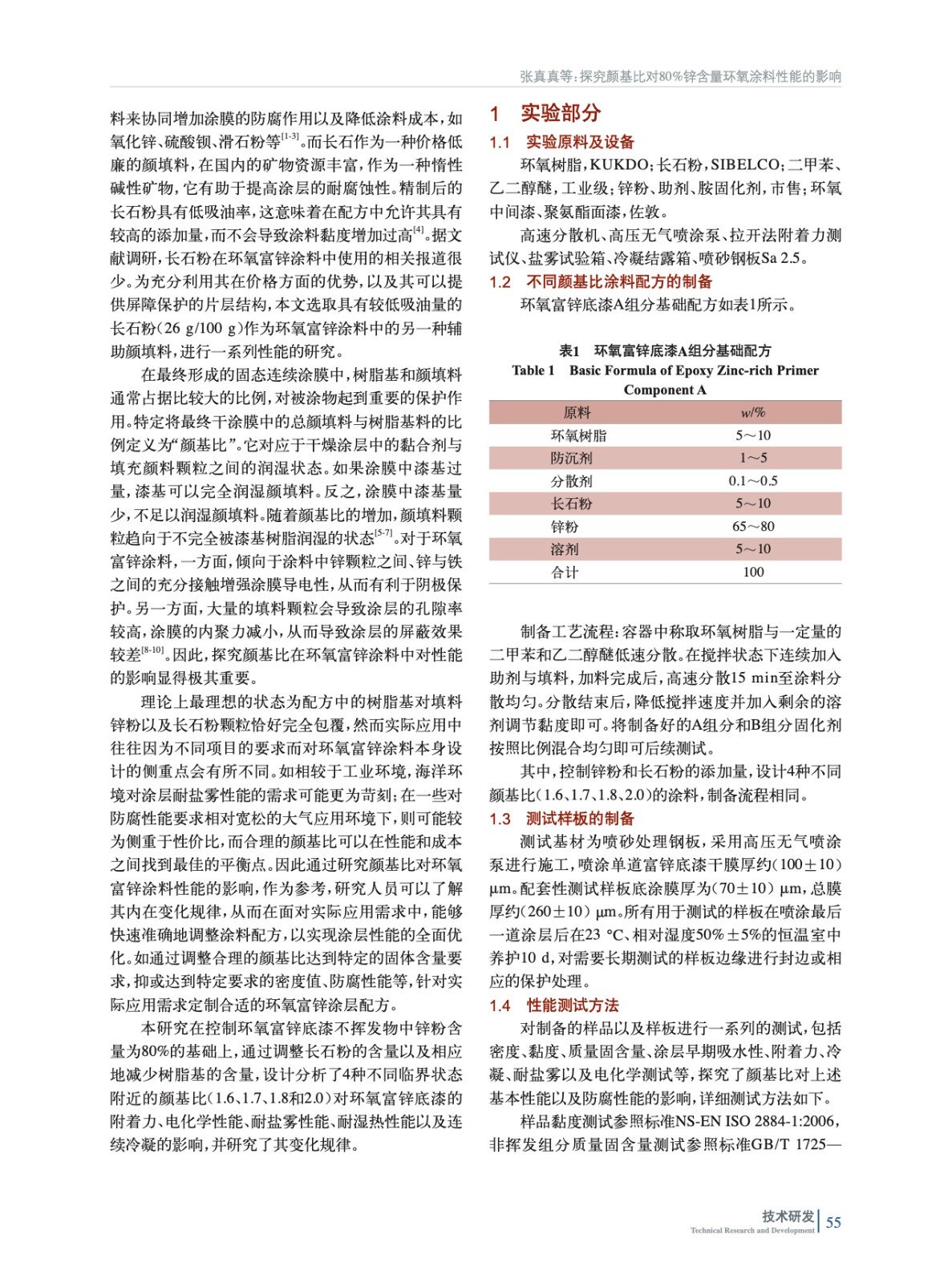 探究顏基比對80%鋅含量環(huán)氧涂料性能的影響