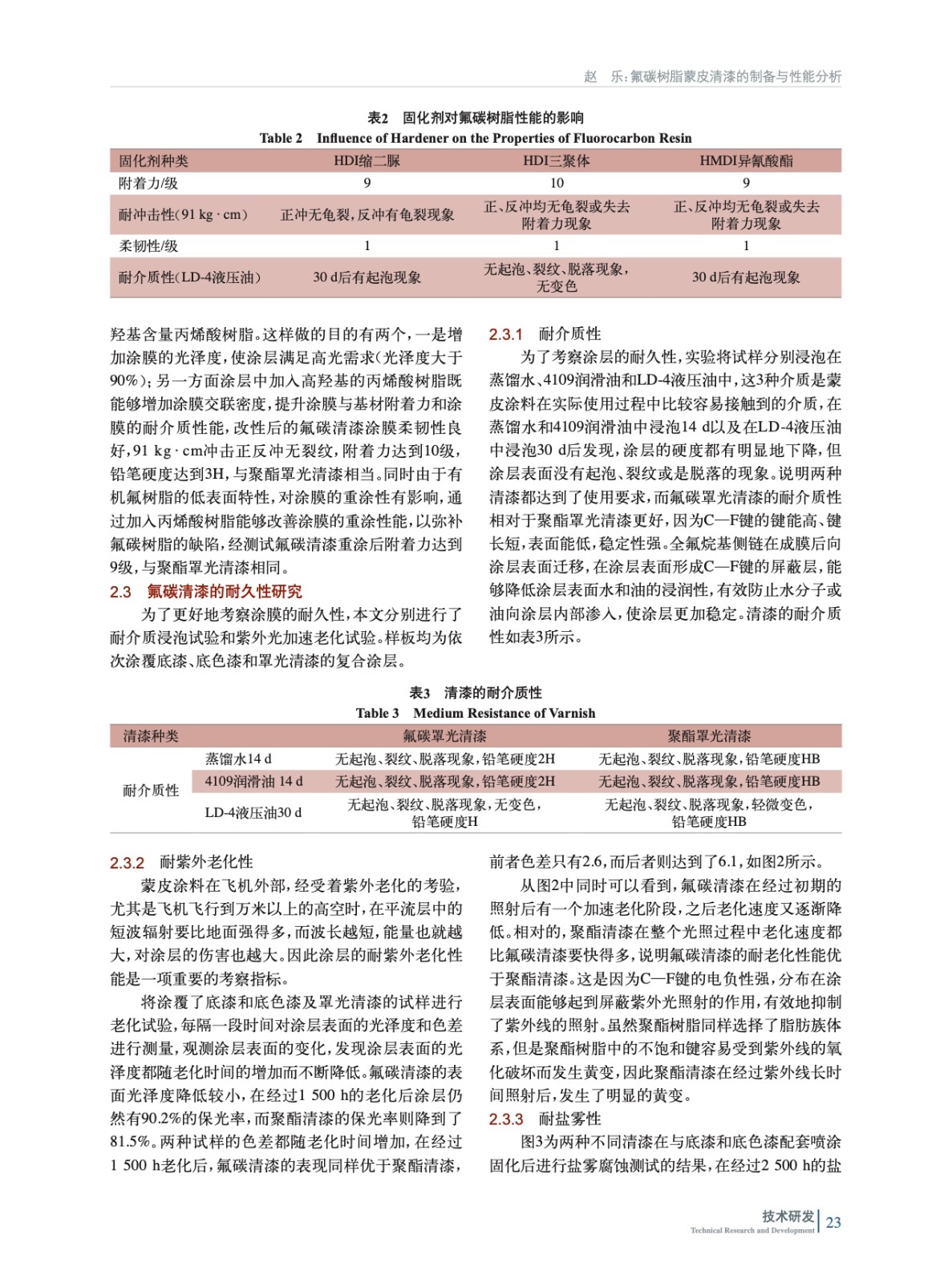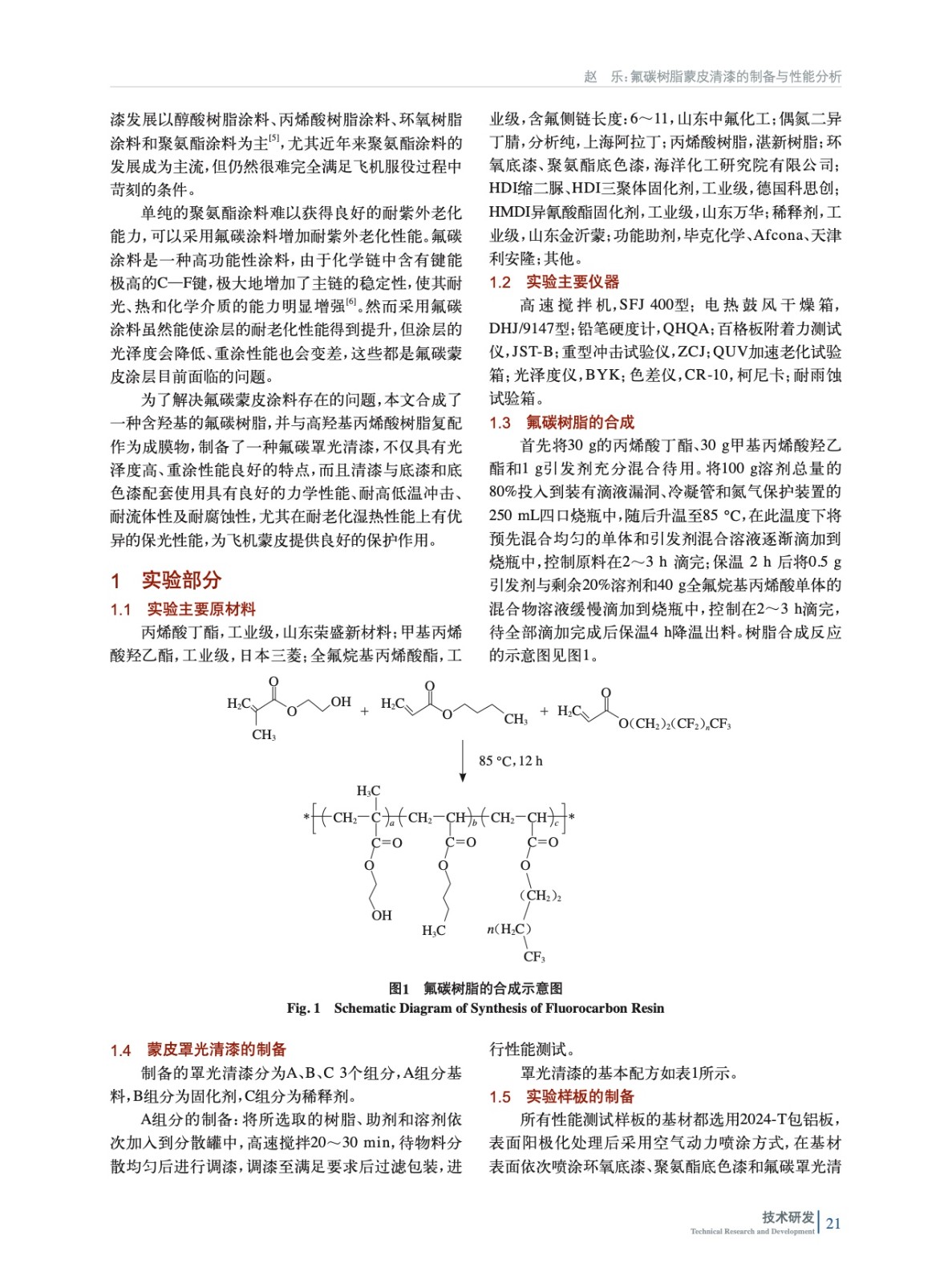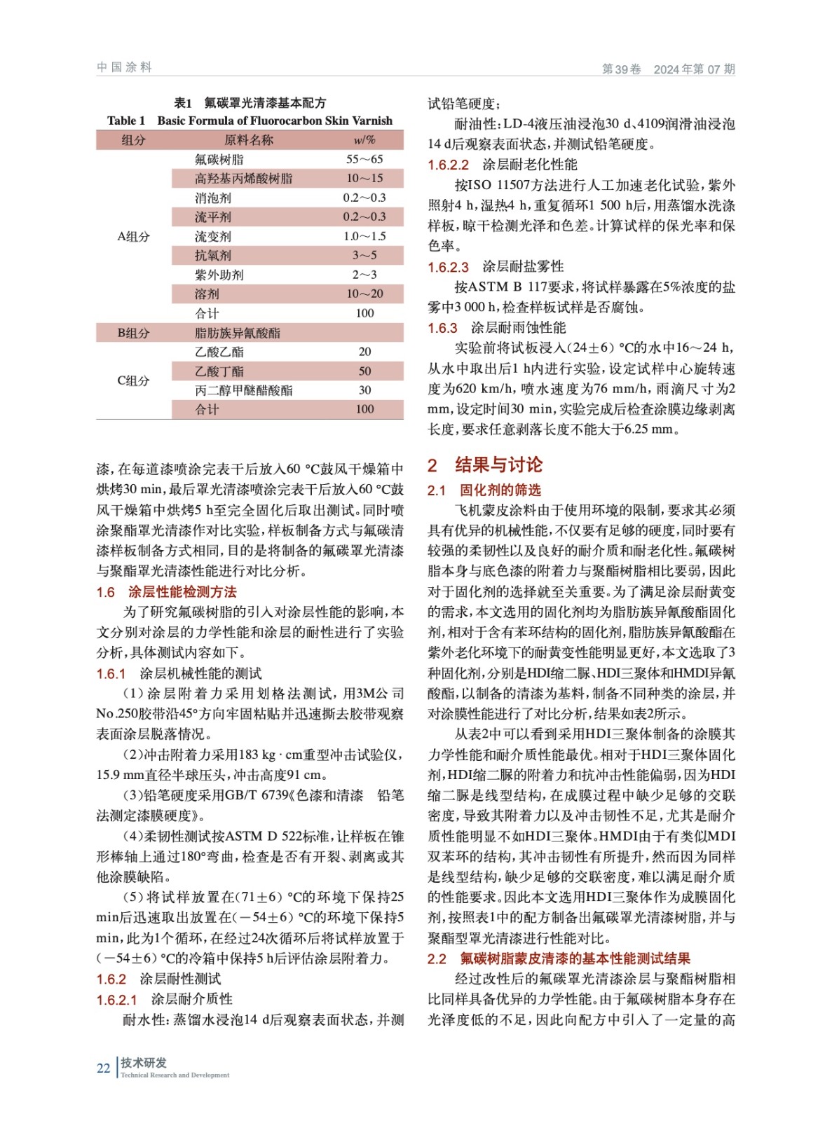 氟碳樹脂蒙皮清漆的制備與性能分析