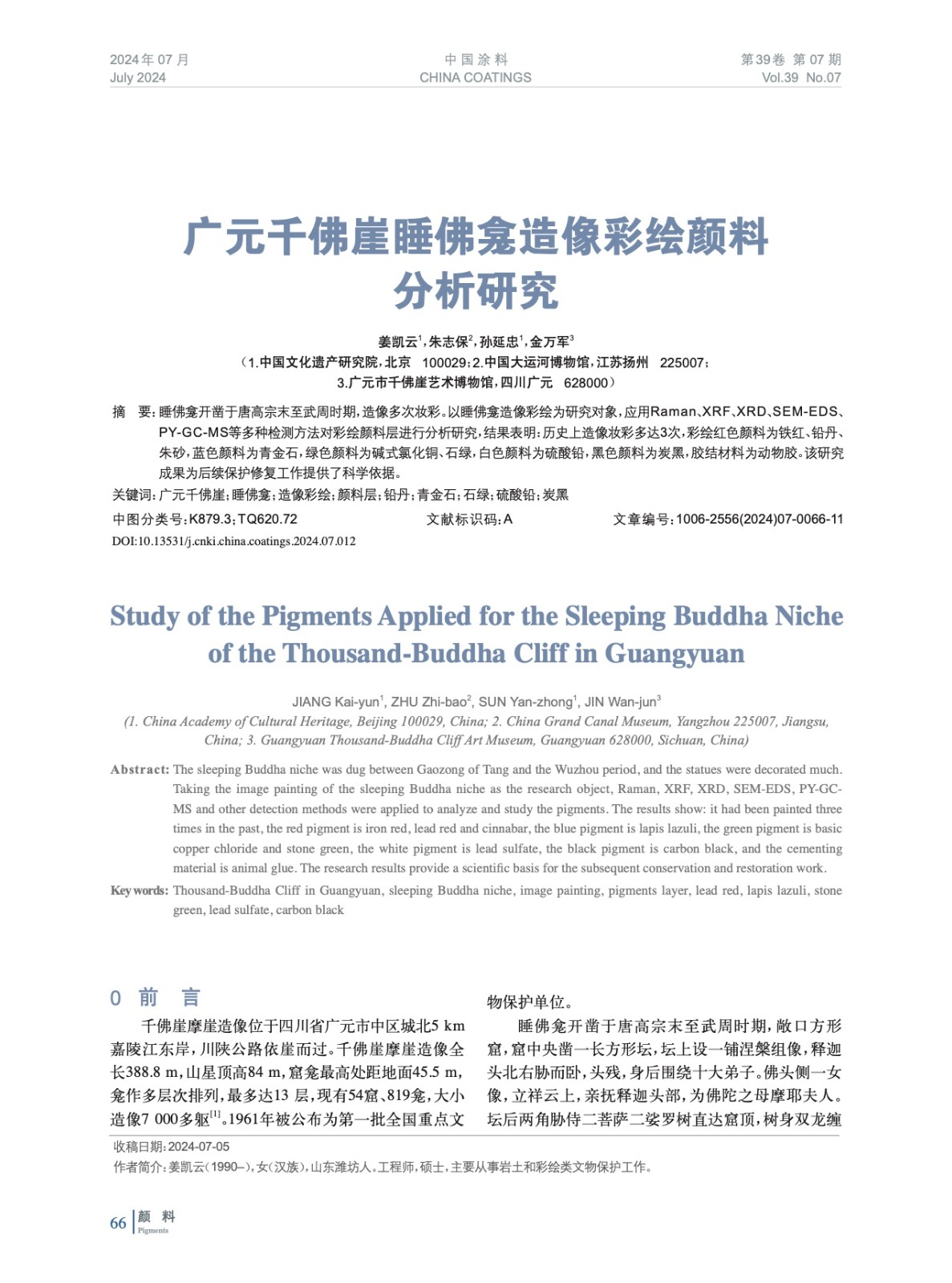 廣元千佛崖睡佛龕造像彩繪顏料分析研究