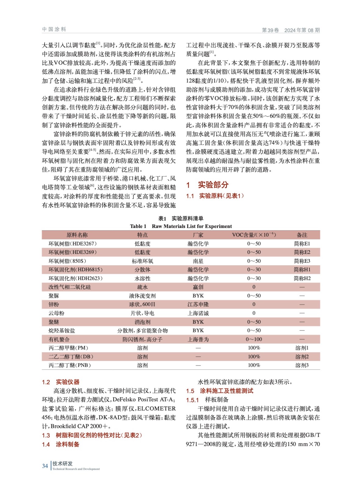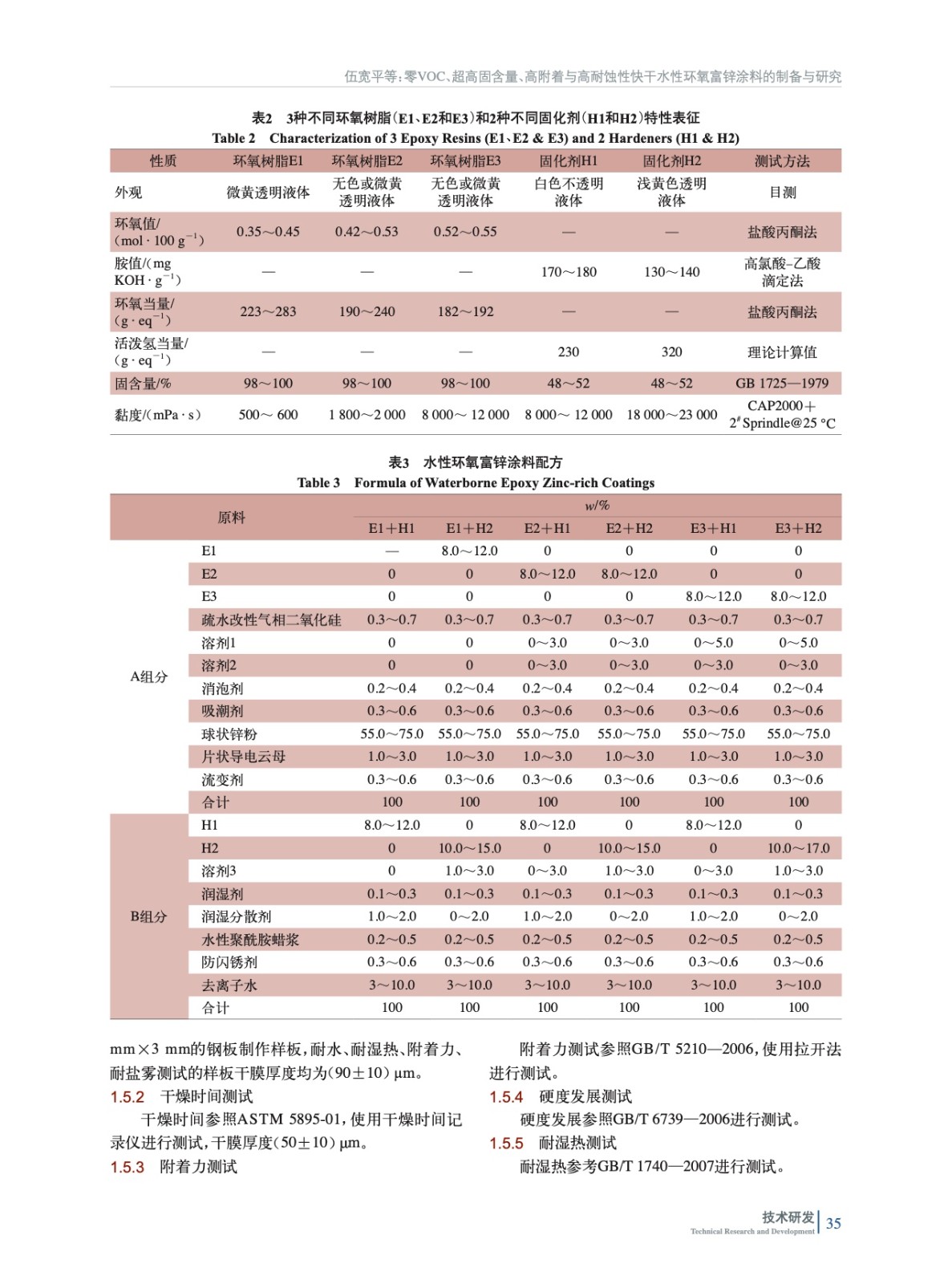 零VOC、超高固含量、高附著與高耐蝕性快干水性環(huán)氧富鋅涂料的制備與研究