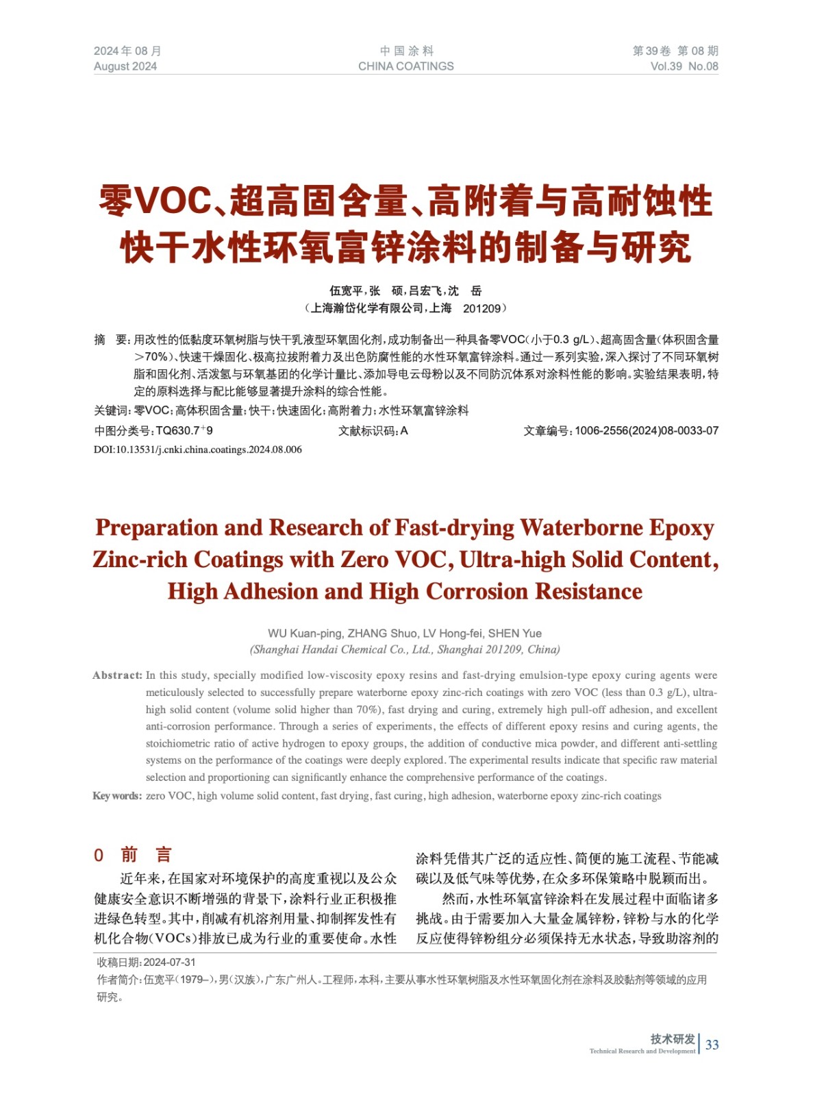 本文系作者@伍寬平,張 碩,呂宏飛,沈 岳 授權(quán)中國涂料網(wǎng)發(fā)表,并經(jīng)中國涂料網(wǎng)編輯,未經(jīng)允許不得轉(zhuǎn)載,如需轉(zhuǎn)載請(qǐng)聯(lián)系chinacoatingnet@vip.163.com