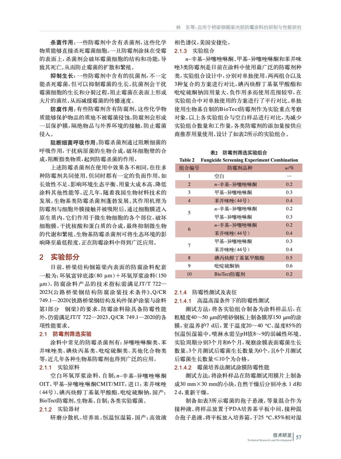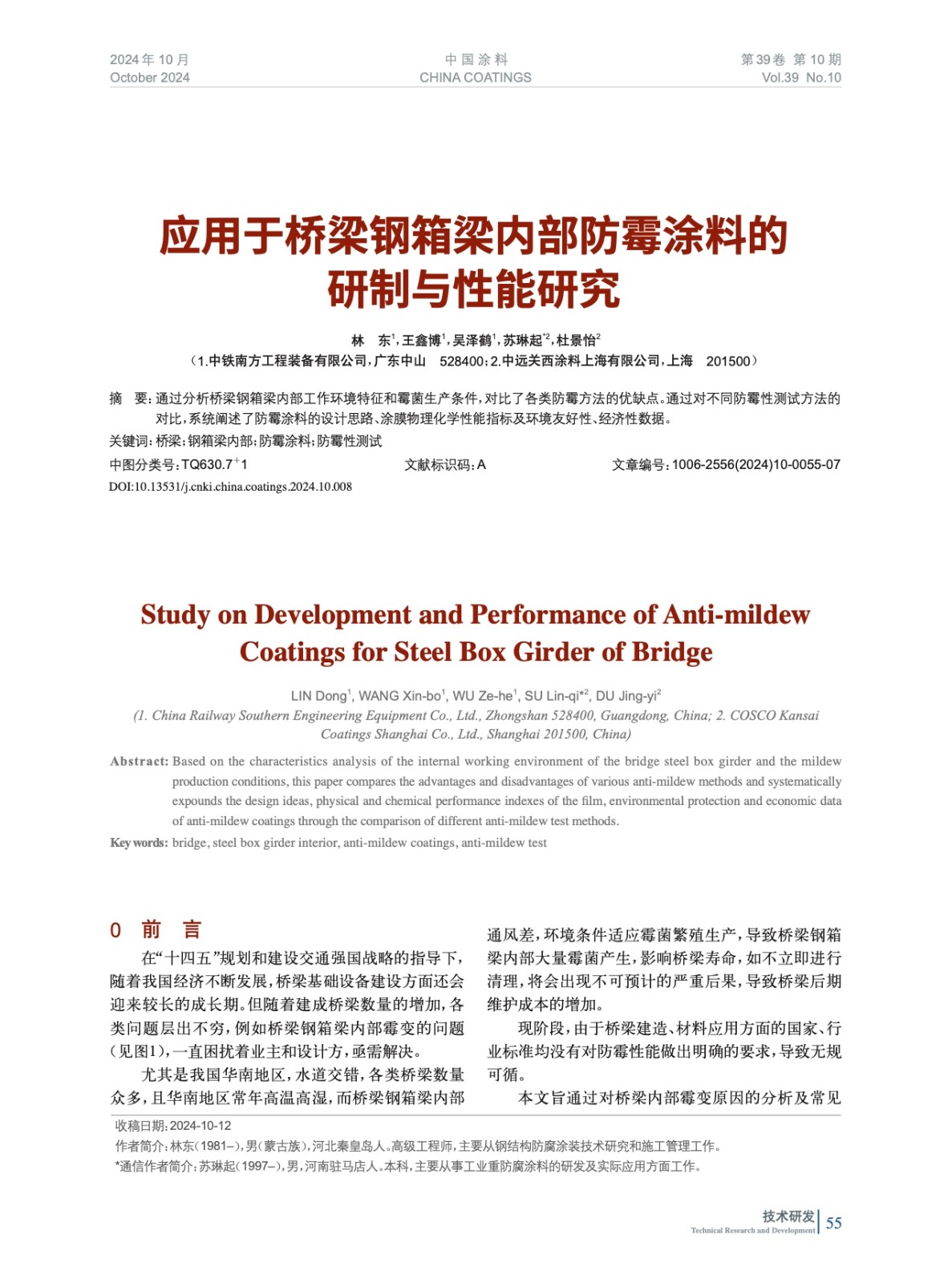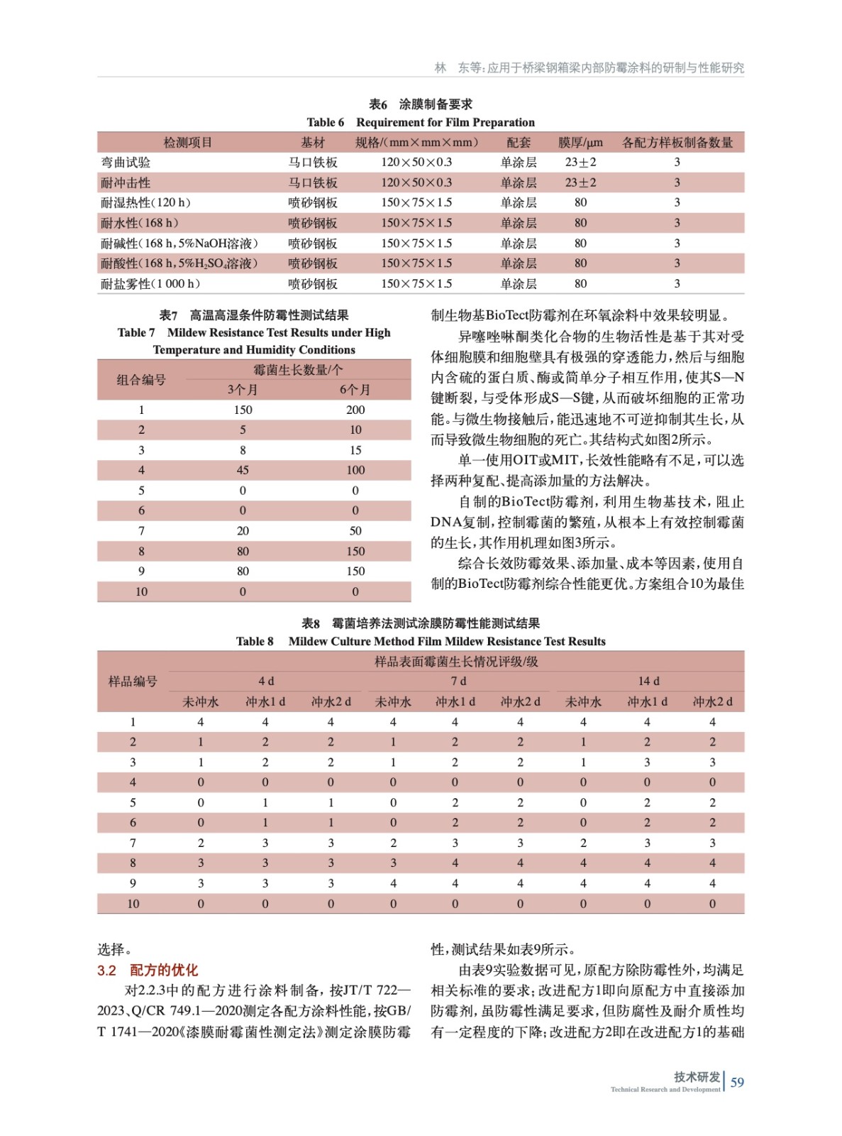 應(yīng)用于橋梁鋼箱梁內(nèi)部防霉涂料的研制與性能研究