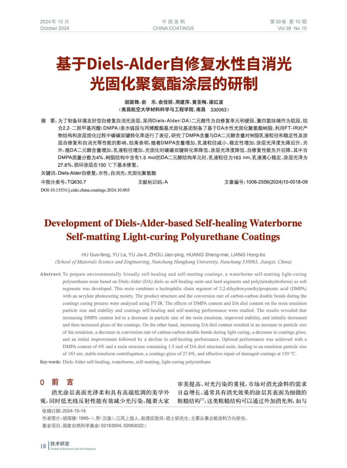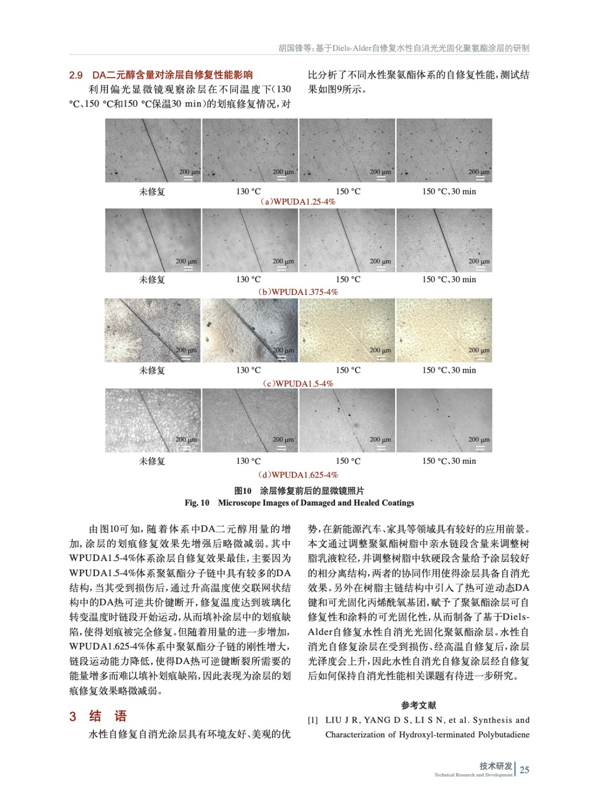 基于Diels-Alder自修復(fù)水性自消光光固化聚氨酯涂層的研制