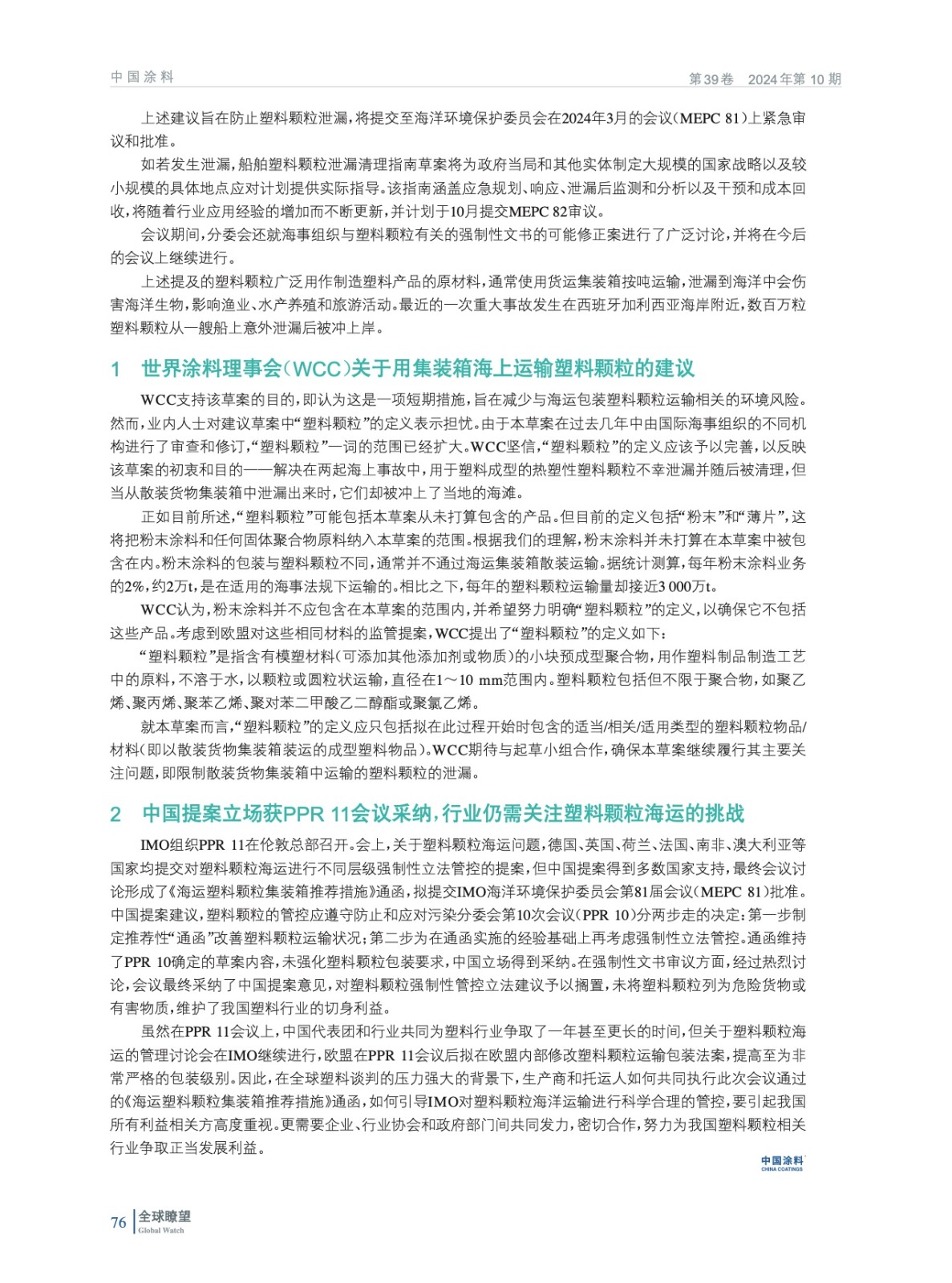 摘要:針對(duì)近期兩起嚴(yán)重的海上事故中,塑料顆粒的泄漏對(duì)當(dāng)?shù)氐暮┰斐晌廴荆贗MO組織在倫敦總部召開(kāi)的會(huì)議上,關(guān)于塑料顆粒海運(yùn)問(wèn)題,歐盟國(guó)家提交了對(duì)塑料顆粒海運(yùn)進(jìn)行不同層級(jí)強(qiáng)制性立法管控的提案。以上兩項(xiàng)提案的實(shí)施,均將對(duì)中國(guó)涂料行業(yè)有一定的影響,特將背景情況簡(jiǎn)要整理供大家參考。本刊上期刊登了有關(guān)第一項(xiàng)提案的情況,本期對(duì)第二項(xiàng)提案進(jìn)行介紹,以饗讀者。