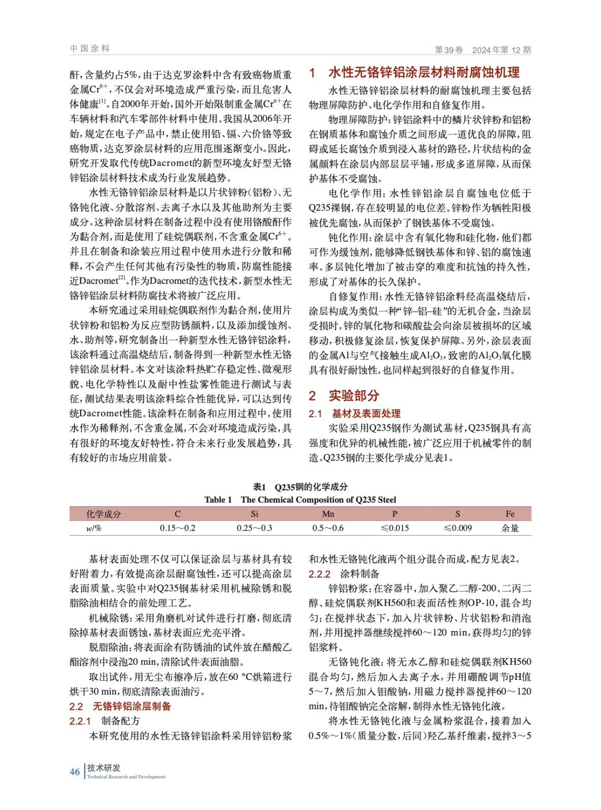 水性無(wú)鉻鋅鋁涂層材料的性能研究