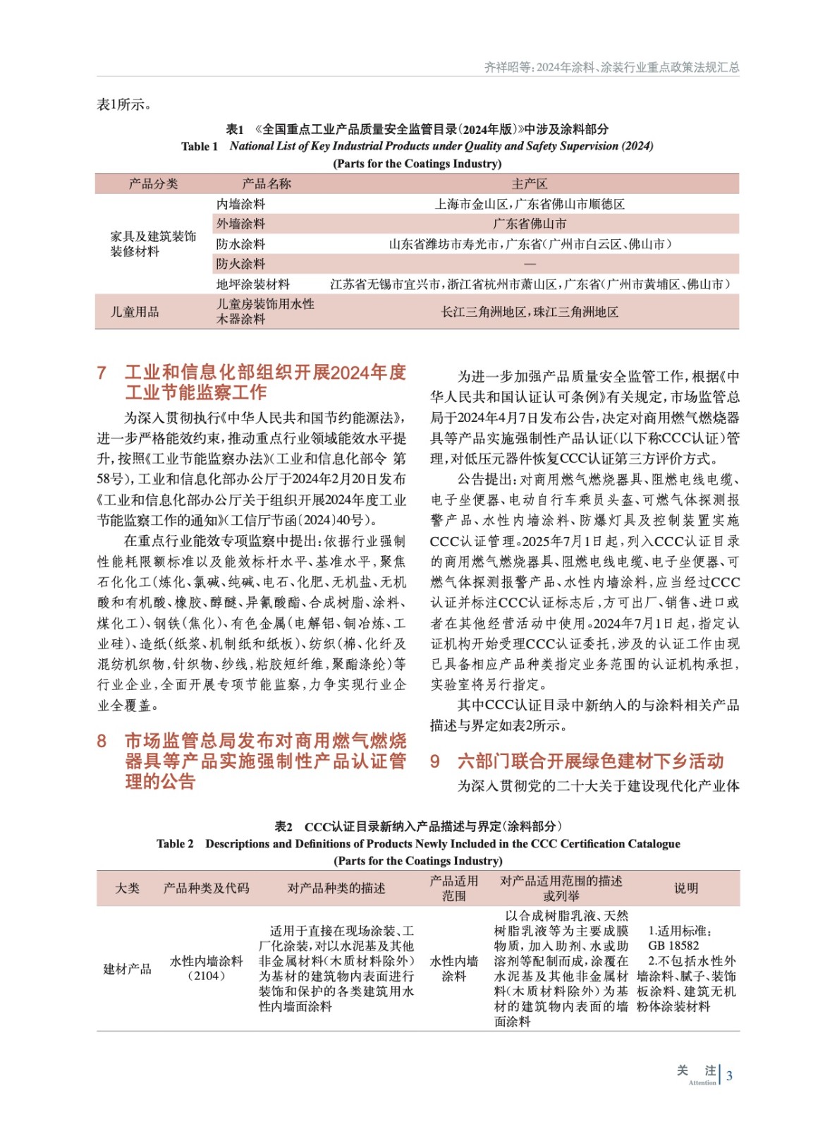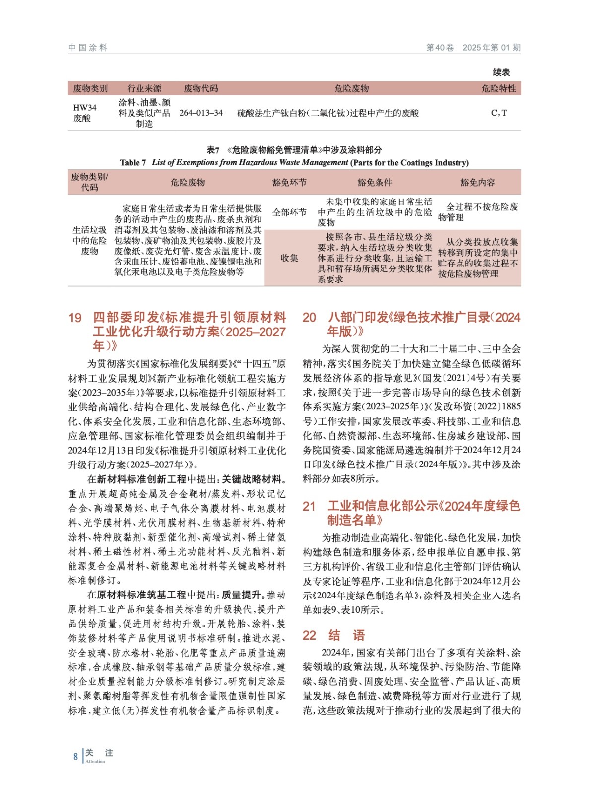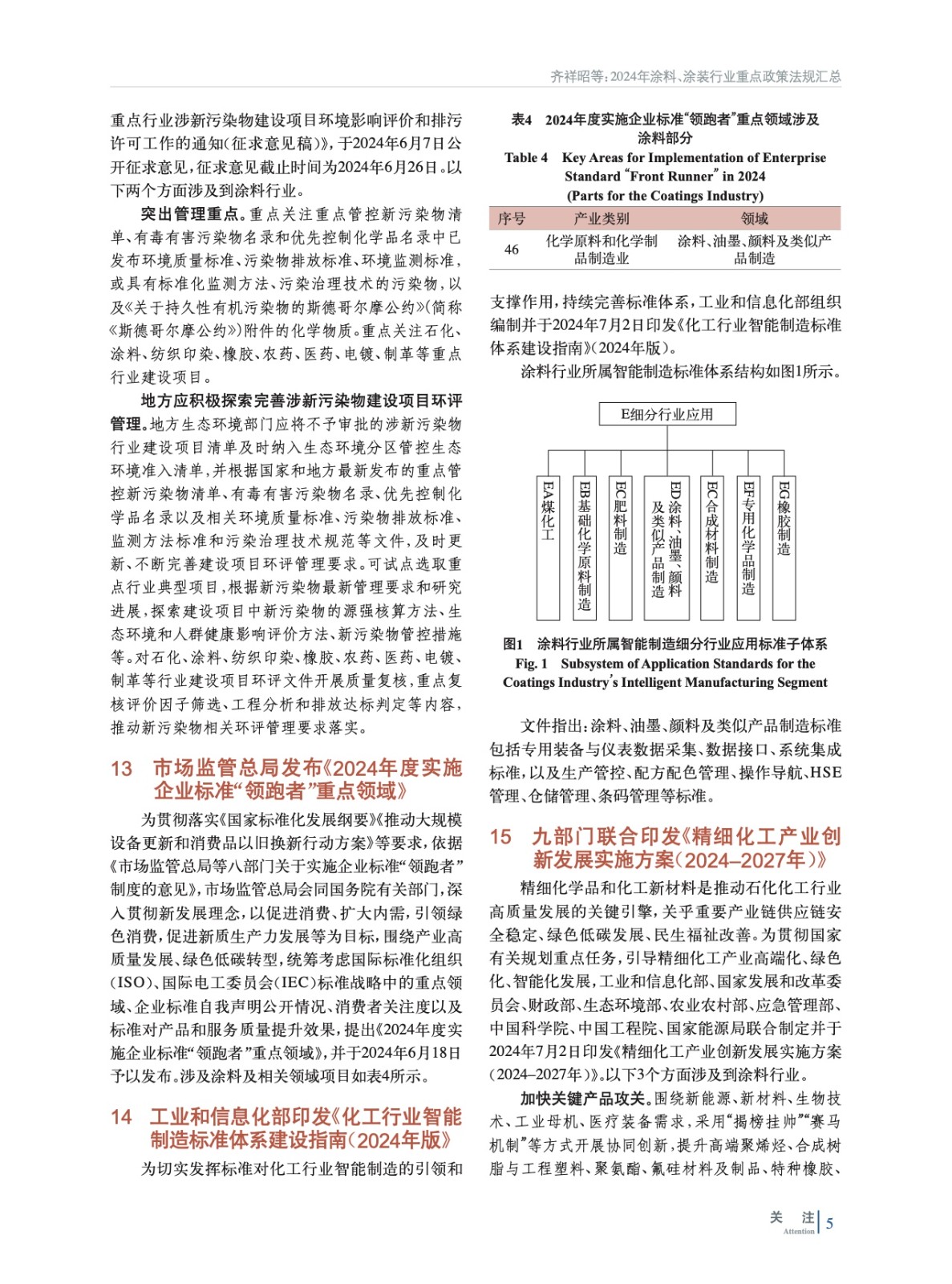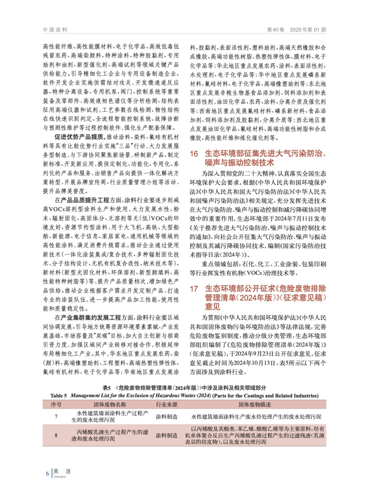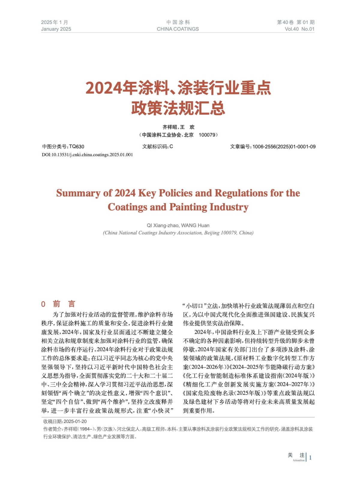 摘要:編者按:2024年,中國涂料行業(yè)及上下游產業(yè)鏈受到眾多不確定的各種因素影響,但持續(xù)轉型升級的腳步未曾停歇。2024年國家有關部門出臺了多項涉及涂料、涂裝領域的政策法規(guī),《原材料工業(yè)數字化轉型工作方案(2024–2026年)》《2024–2025年節(jié)能降碳行動方案》《化工行業(yè)智能制造標準體系建設指南(2024年版)》《精細化工產業(yè)創(chuàng)新發(fā)展實施方案(2024–2027年)》《國家危險廢物名錄(2025年版)》等重點政策法規(guī)以及綠色建材下鄉(xiāng)活動等將對行業(yè)未來高質量發(fā)展起到重要作用。