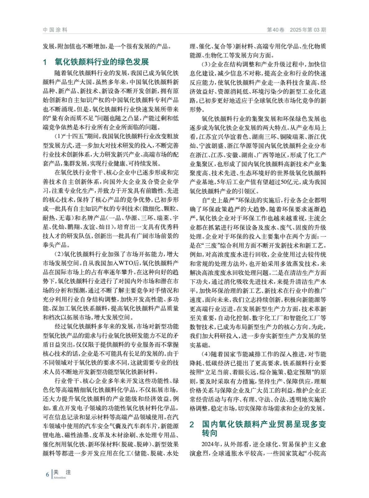 摘要:綜述了當(dāng)前中國氧化鐵行業(yè)、企業(yè)的綠色、創(chuàng)新發(fā)展現(xiàn)狀,指出2024年國內(nèi)氧化鐵顏料產(chǎn)業(yè)貿(mào)易呈現(xiàn)出多變轉(zhuǎn)向,并對(duì)未來行業(yè)發(fā)展進(jìn)行了建議和展望。