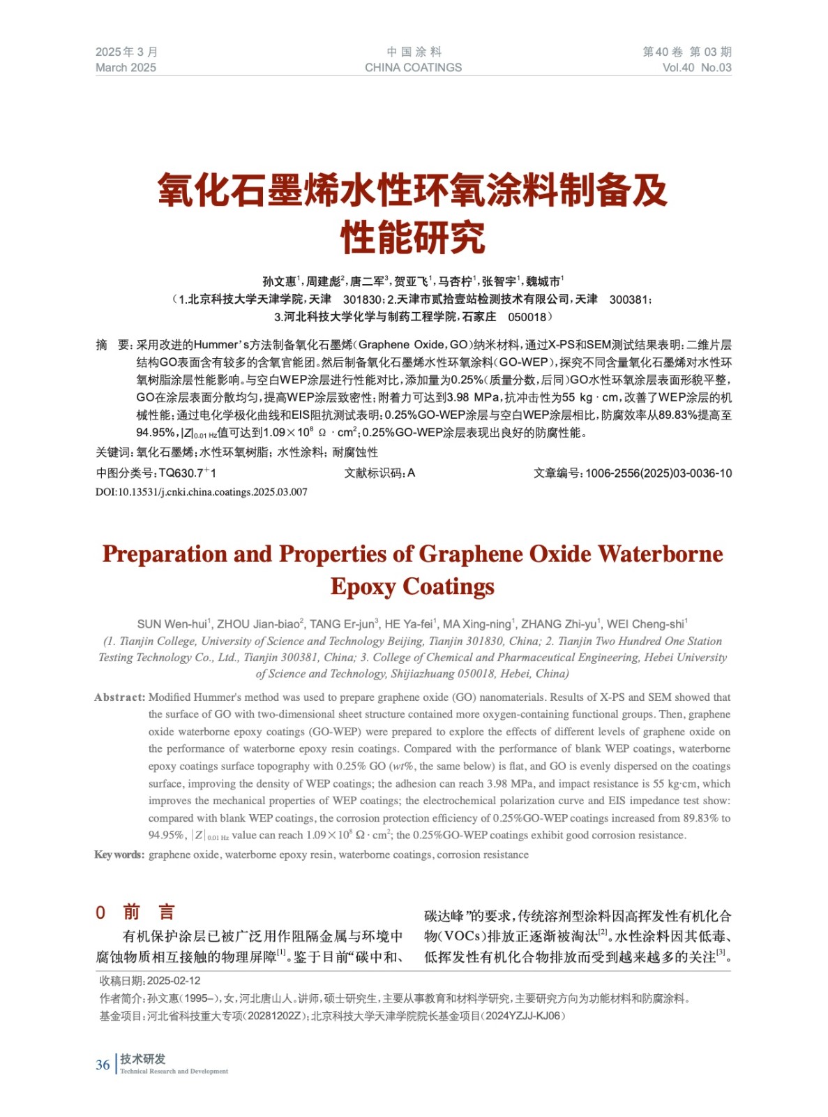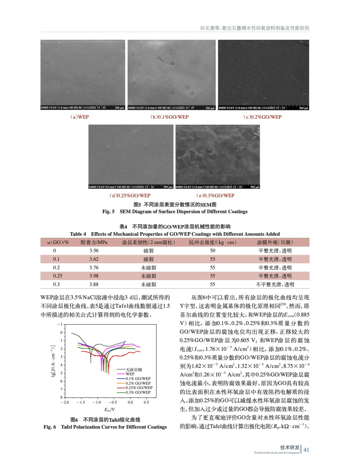 氧化石墨烯水性環(huán)氧涂料制備及性能研究