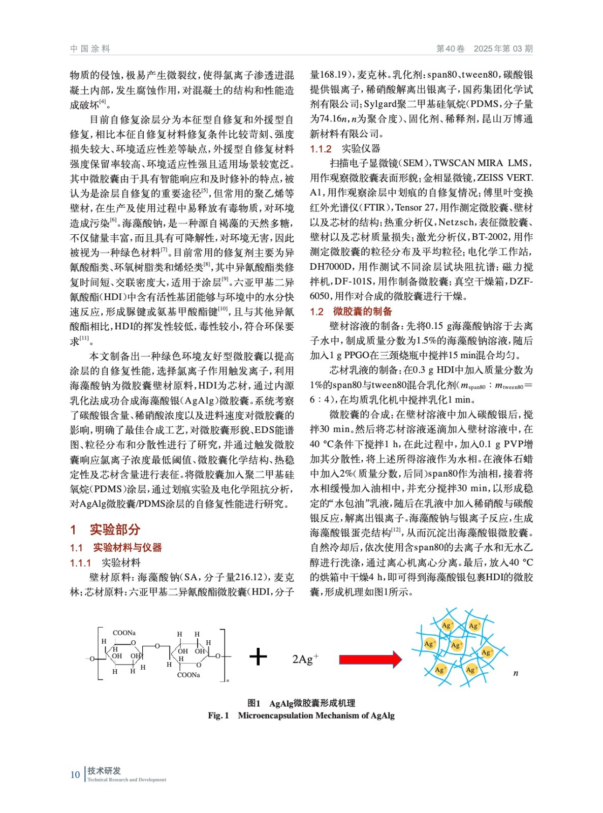 海藻酸銀微膠囊/PDMS涂層制備及自修復性能研究