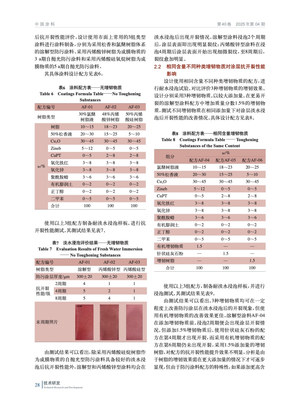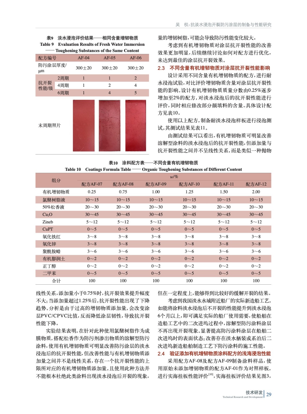 抗淡水浸泡開裂防污涂層的制備與性能研究