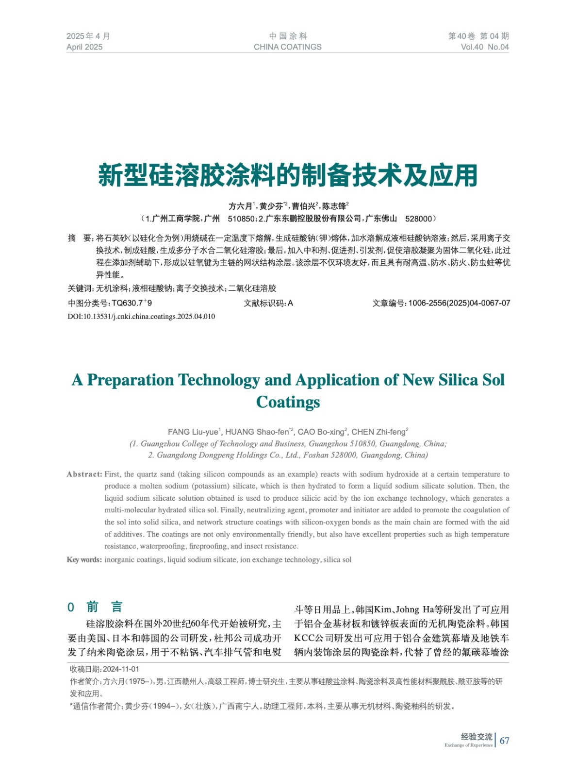 本文系作者@方六月,黃少芬,曹伯興,陳志鋒 授權(quán)中國涂料網(wǎng)發(fā)表,并經(jīng)中國涂料網(wǎng)編輯,未經(jīng)允許不得轉(zhuǎn)載,如需轉(zhuǎn)載請聯(lián)系chinacoatingnet@vip.163.com