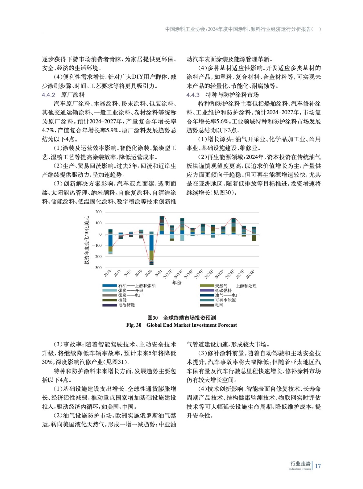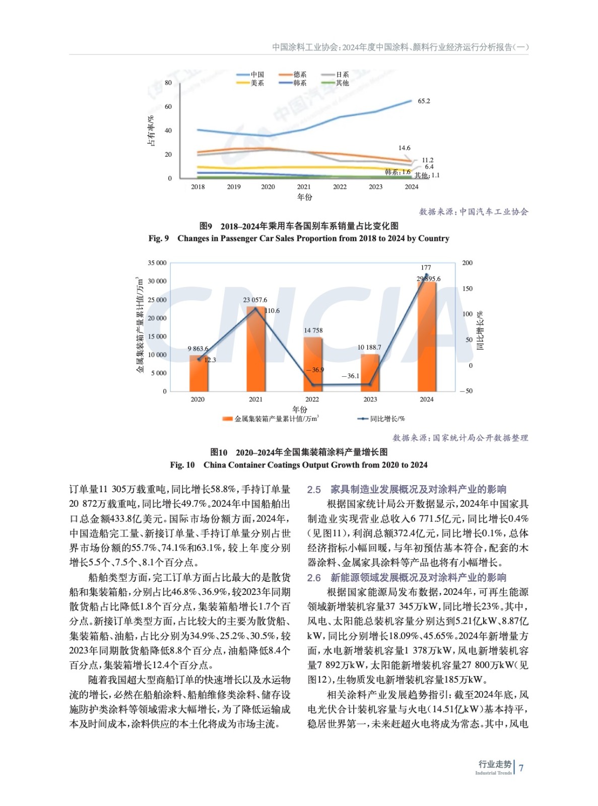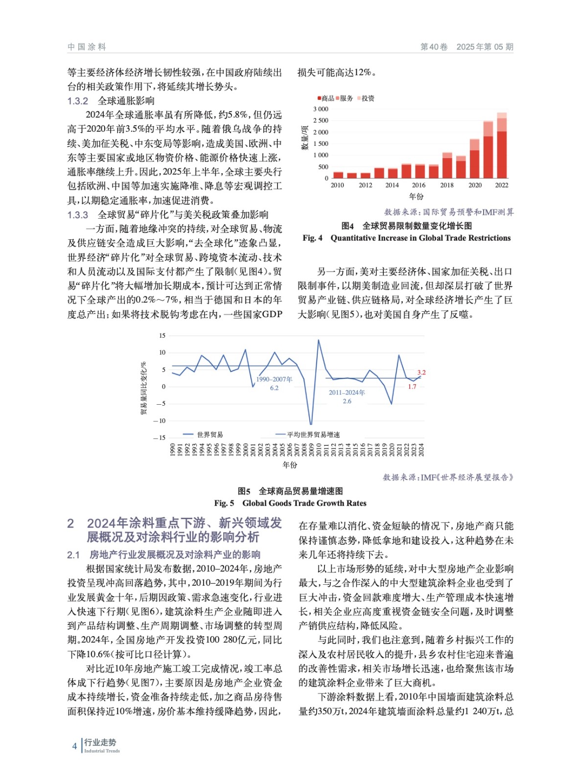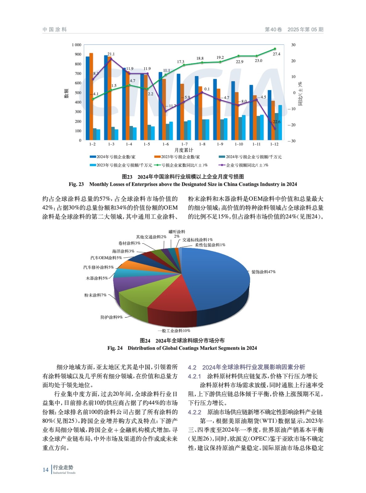 摘要:簡析了2024年中國宏觀經濟及外部環(huán)境發(fā)展情況,概括介紹了2024年房地產、機械、集裝箱、船舶、家具、新能源等涂料重點下游行業(yè)、新興領域發(fā)展概況及對涂料行業(yè)的影響,重點分析了2024年度中國涂料行業(yè)發(fā)展和進出口情況。綜述了全球涂料行業(yè)發(fā)展概況,對2024年全球涂料行業(yè)發(fā)展影響因素、全球涂料行業(yè)增長動力、全球涂料行業(yè)細分領域趨勢進行了分析。最后對涂料上游鈦白粉、氧化鐵、丙烯酸乳液和環(huán)氧樹脂等重點原材料領域發(fā)展情況進行了概述,并對中國涂料行業(yè)特征和發(fā)展趨勢進行了分析和預測。