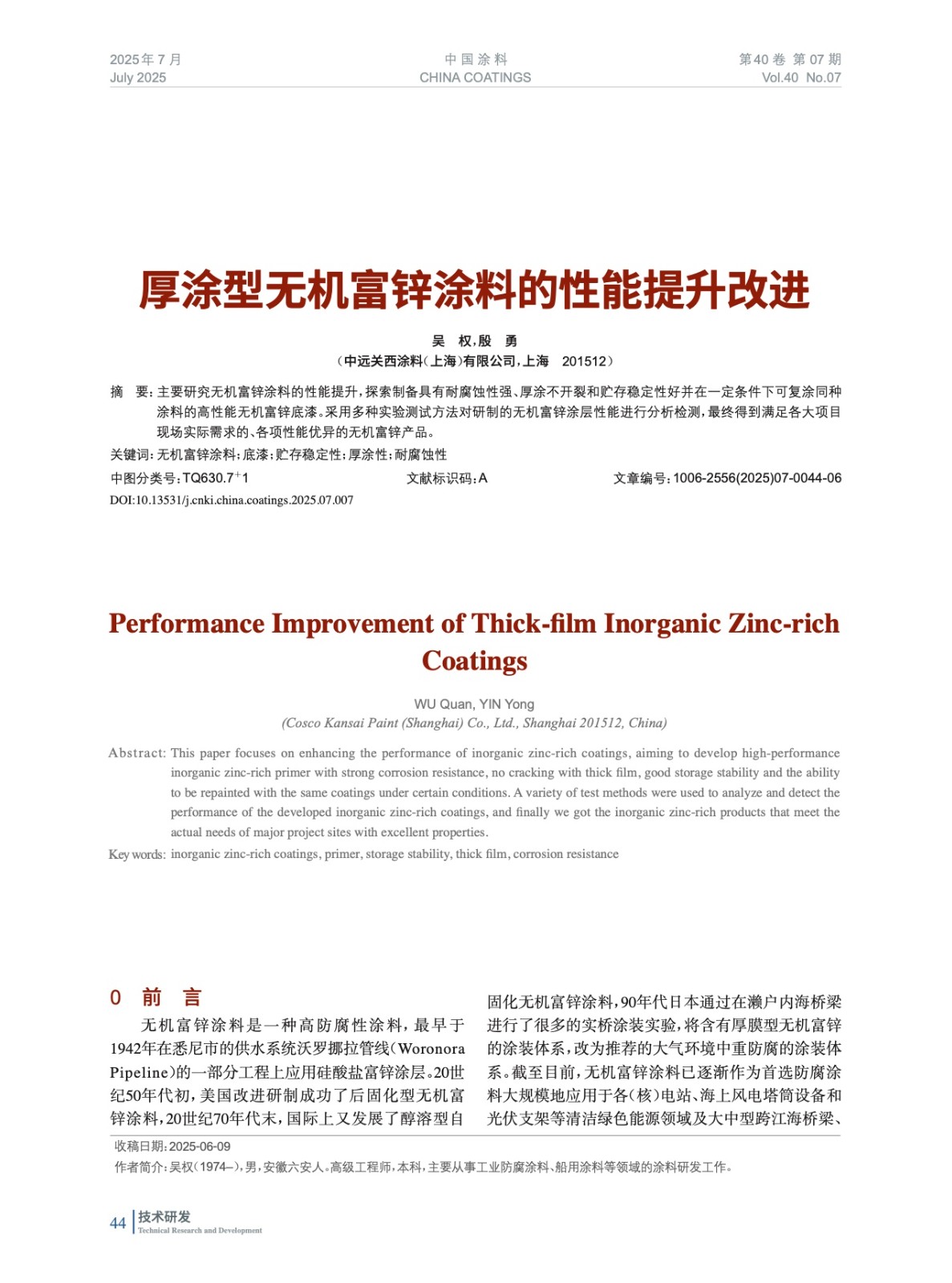本文系作者@吳 權(quán),殷 勇 授權(quán)中國涂料網(wǎng)發(fā)表,并經(jīng)中國涂料網(wǎng)編輯,未經(jīng)允許不得轉(zhuǎn)載,如需轉(zhuǎn)載請聯(lián)系chinacoatingnet@vip.163.com
