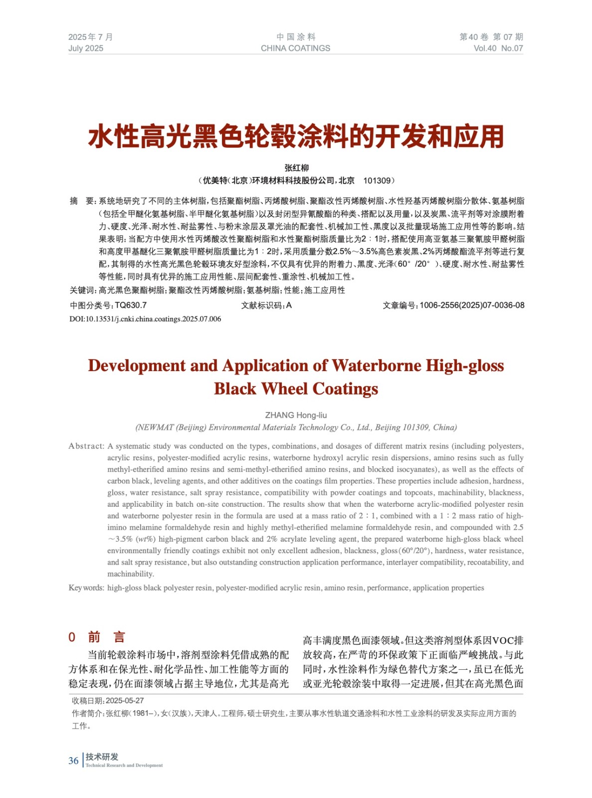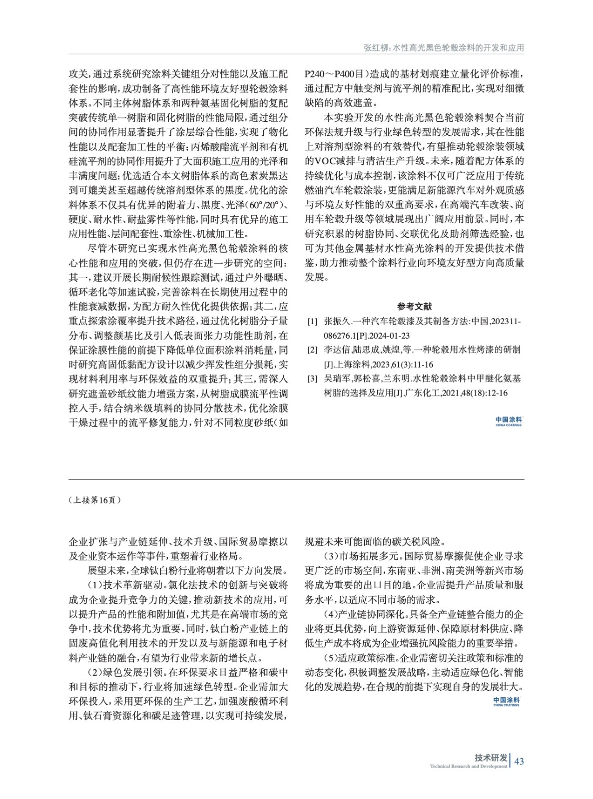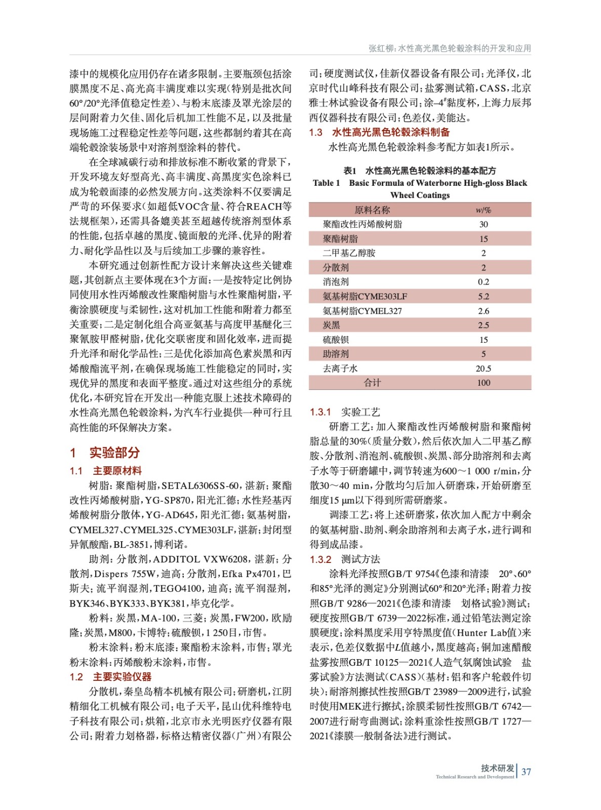 水性高光黑色輪轂涂料的開發(fā)和應(yīng)用