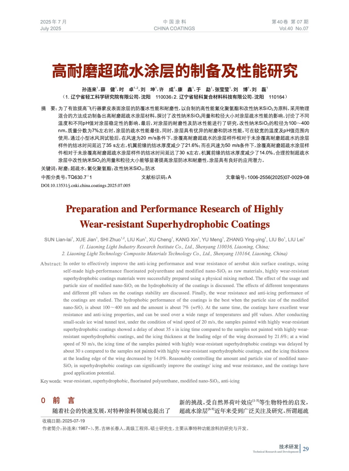 本文系作者@孫連來,薛 健,時(shí) 卓,劉 坤,許 成,康 鑫,于 勐,張瑩瑩,劉 博,劉 磊 授權(quán)中國(guó)涂料網(wǎng)發(fā)表,并經(jīng)中國(guó)涂料網(wǎng)編輯,未經(jīng)允許不得轉(zhuǎn)載,如需轉(zhuǎn)載請(qǐng)聯(lián)系chinacoatingnet@vip.163.com