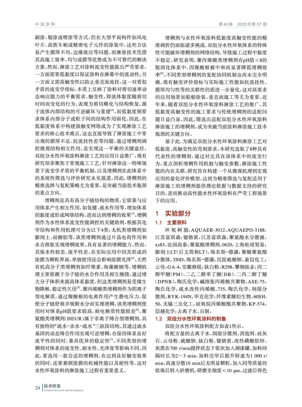 增稠劑對(duì)雙組分水性環(huán)氧涂料施工適應(yīng)性的流變學(xué)改進(jìn)