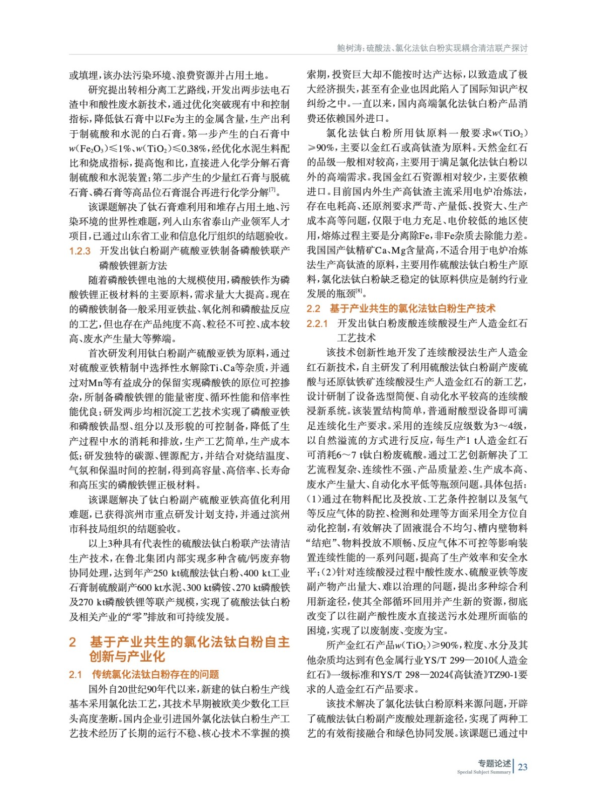 硫酸法、氯化法鈦白粉實(shí)現(xiàn)耦合清潔聯(lián)產(chǎn)探討