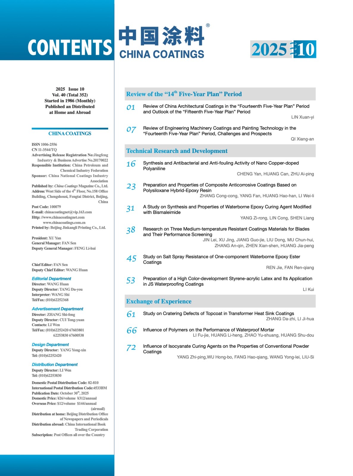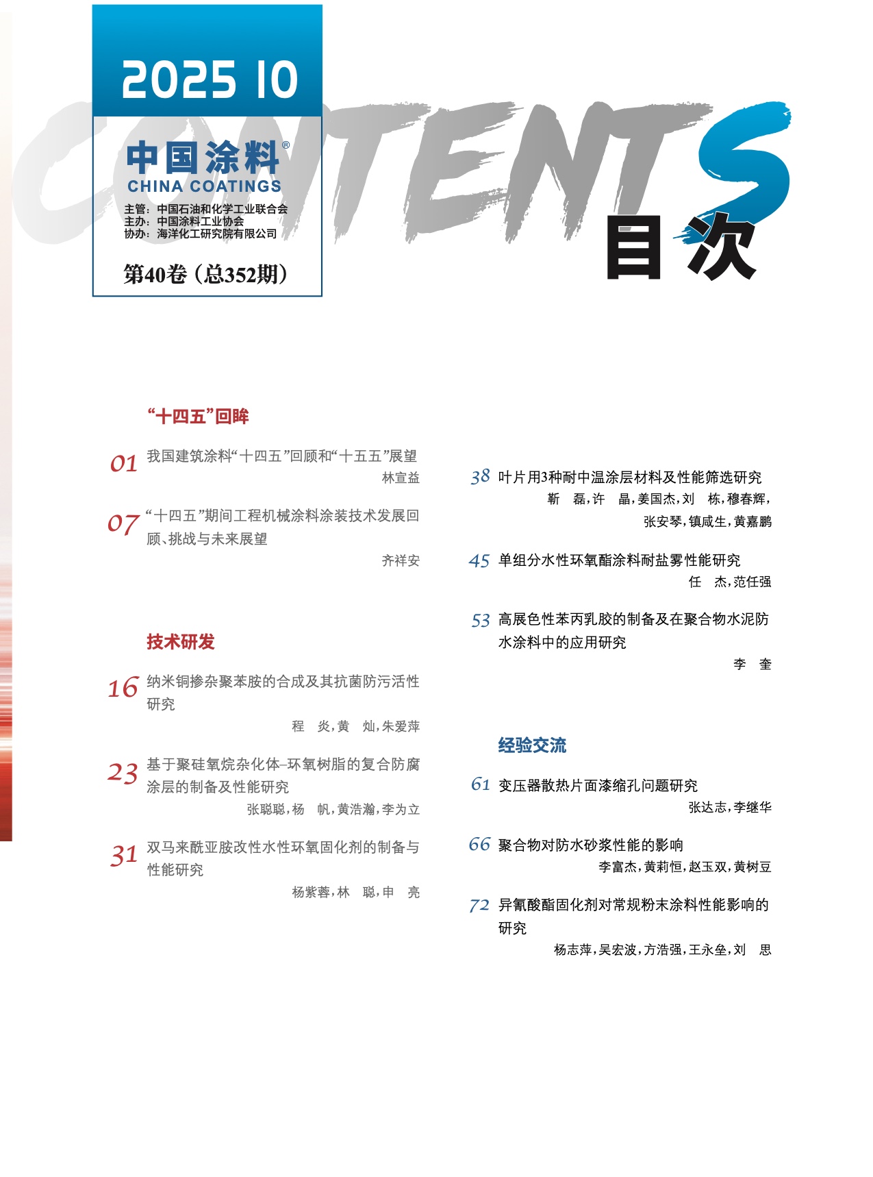 《中國(guó)涂料》2025年第10期版權(quán)及目錄