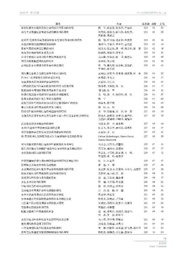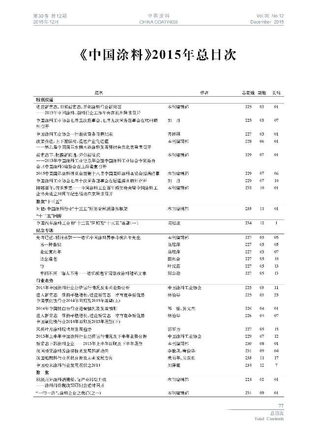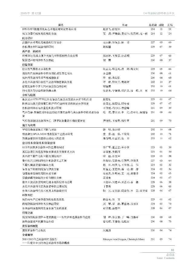 《中國涂料》2015年總目次