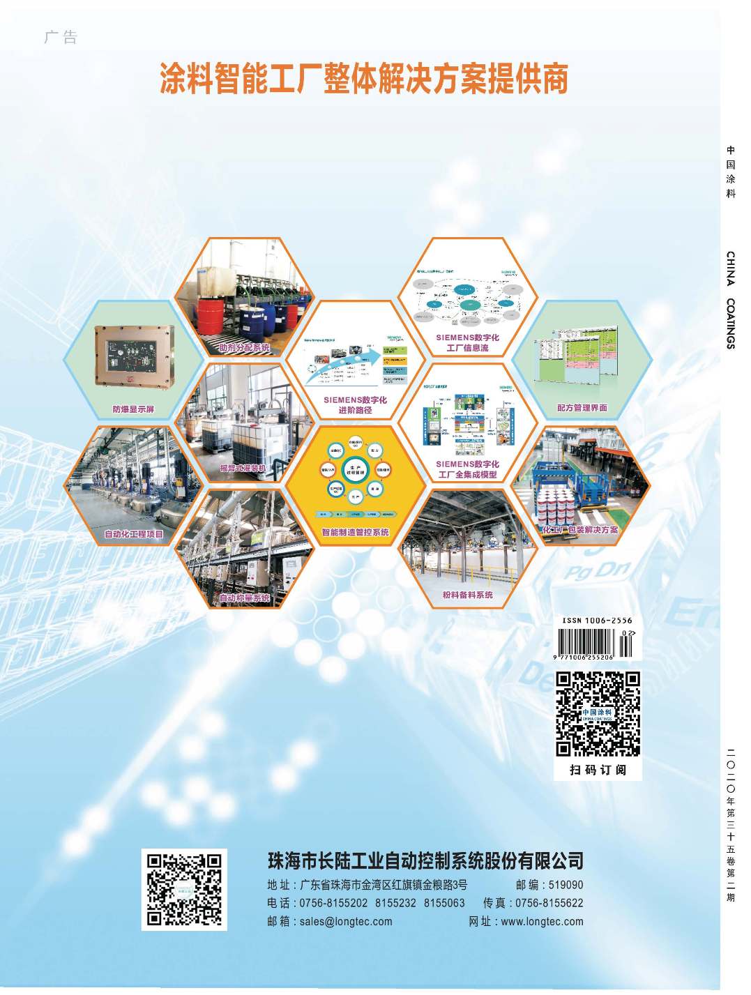 封1:朗盛特殊化學(xué)品有限公司;封2:上海保立佳化工有限公司;封3:阿克蘇諾貝爾太古漆油(上海)有限公司;封4:珠海市長陸工業(yè)自動控制系統(tǒng)股份有限公司