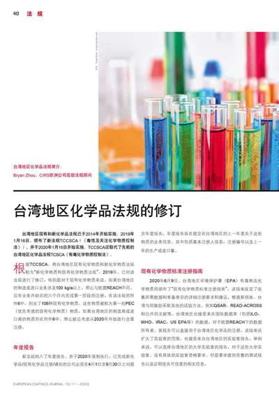 臺灣地區(qū)化學(xué)品法規(guī)的修訂