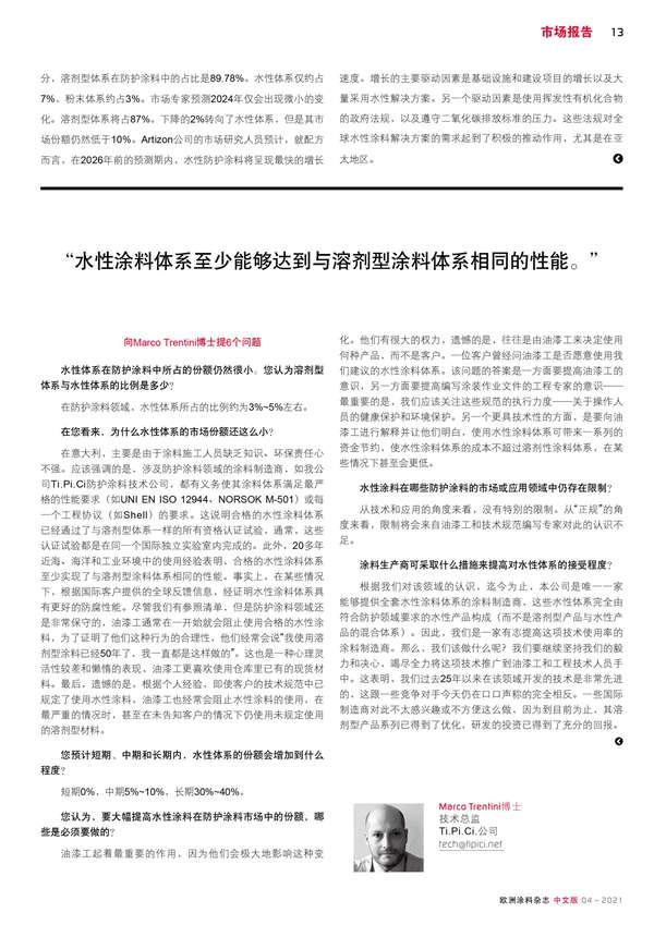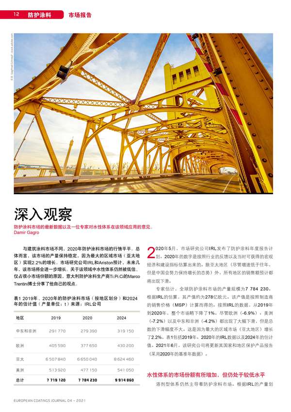 防護涂料市場的最新數(shù)據(jù)以及一位專家對水性體系在該領(lǐng)域應(yīng)用的意見