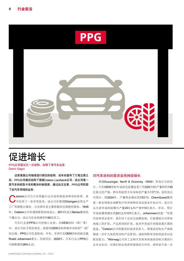 PPG公司通過又一次收購,加強了其汽車業(yè)務