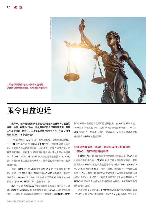 二甲基甲酰胺的REACH限令日益迫近