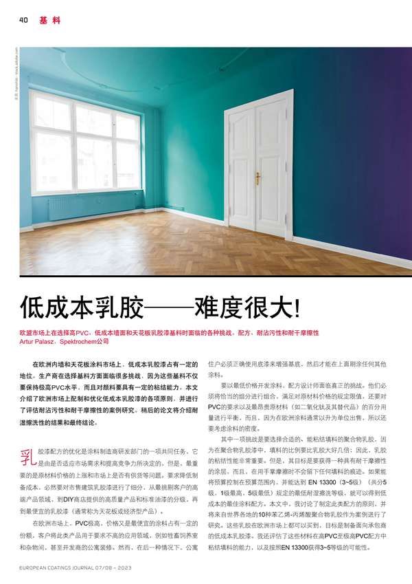 歐盟市場上在選擇高PVC、低成本墻面和天花板乳膠漆基料時面臨的各種挑戰(zhàn)