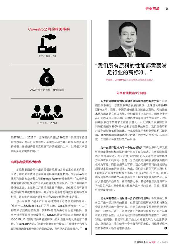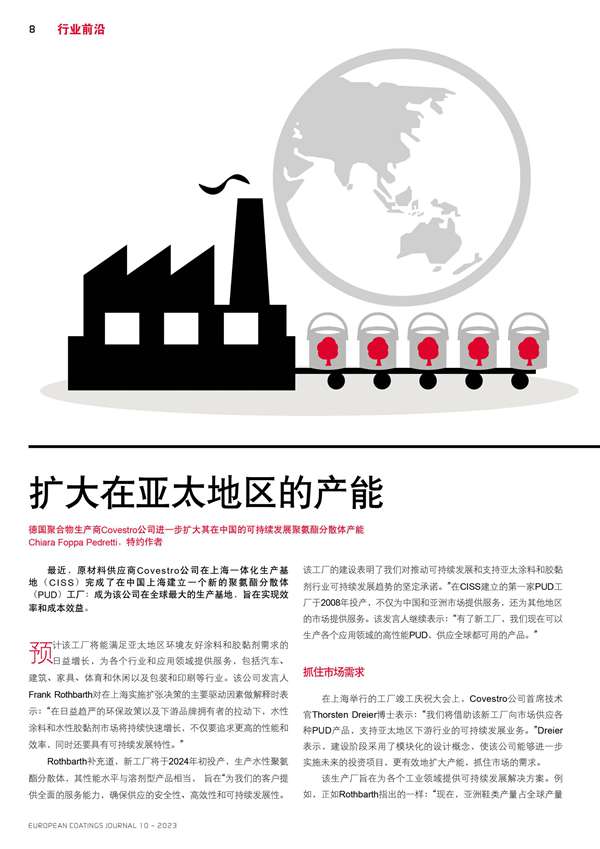 Covestro公司進(jìn)一步擴(kuò)大其在中國的聚氨酯分散體產(chǎn)能
