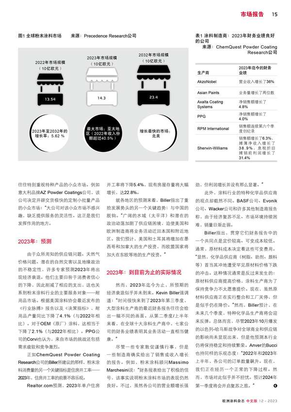 在新冠疫情之后、可能出現(xiàn)經(jīng)濟(jì)衰退之前的一年里,粉末涂料仍然表現(xiàn)良好。