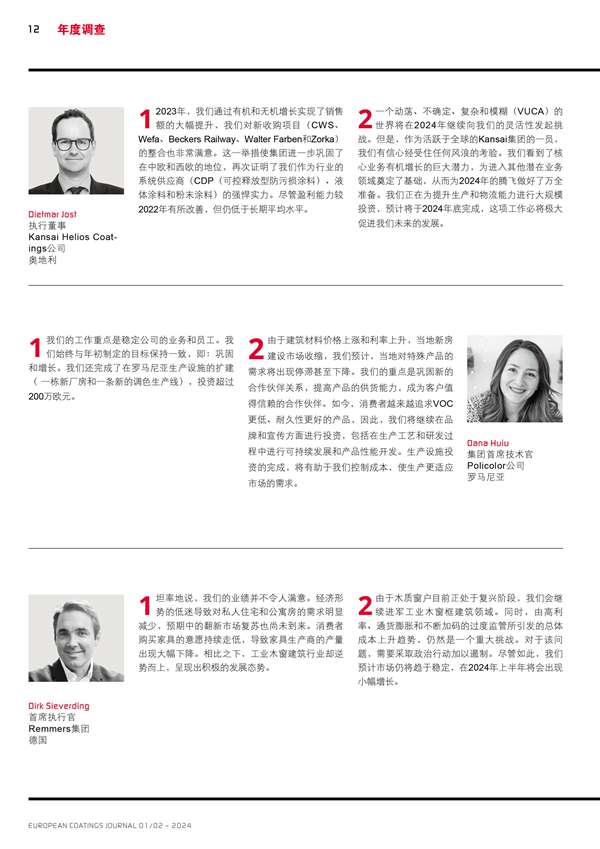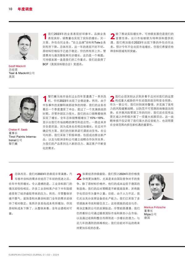 歐洲涂料生產(chǎn)商主要負(fù)責(zé)人的回顧和展望分享