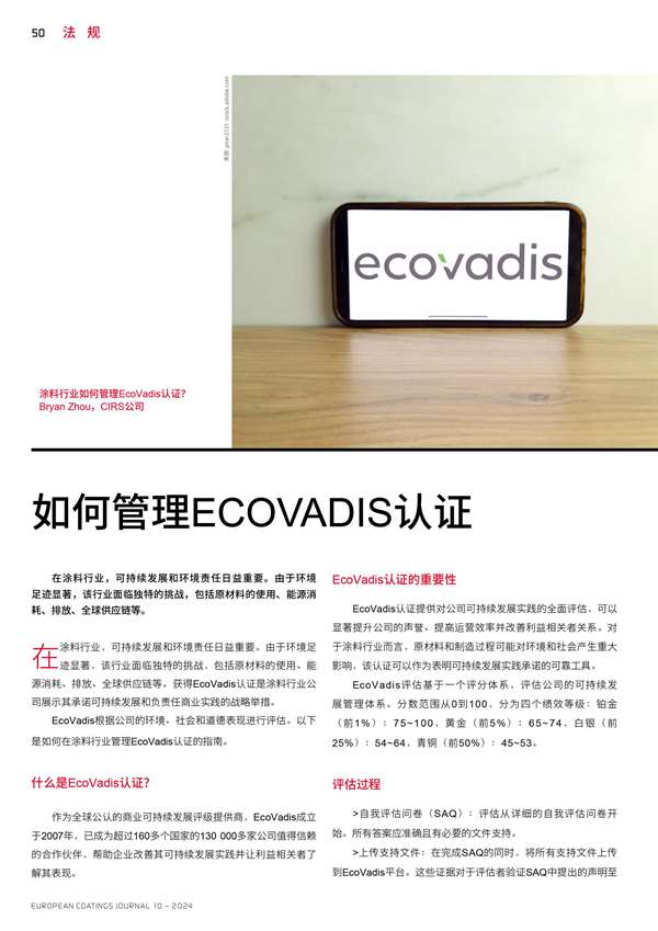 涂料行業(yè)如何管理EcoVadis認(rèn)證?