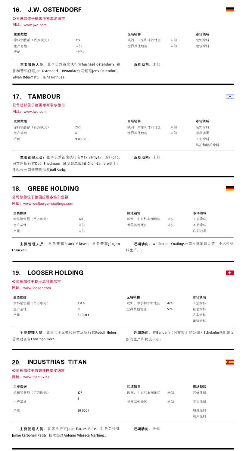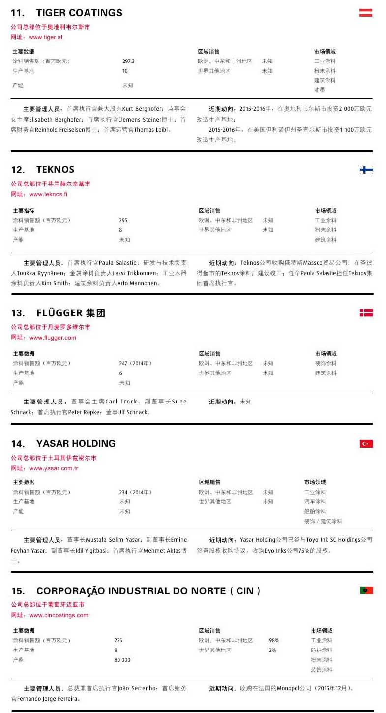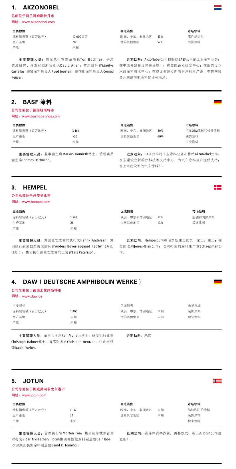 摘要:本雜志根據(jù)各公司的收益情況,對總部設(shè)在歐洲大陸的歐洲涂料行業(yè)前25名進行了排行。