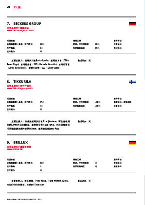 歐洲涂料雜志再次排出總部位于歐洲的前25家涂料生產(chǎn)商