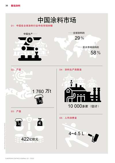中國(guó)在全球涂料行業(yè)中的市場(chǎng)份額:全球涂料的29%,亞太市場(chǎng)涂料的58%