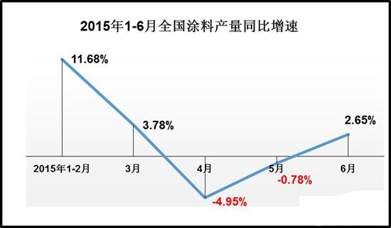 如今,涂料消費稅已實施半年,對全國涂料銷量的影響也正逐步顯現(xiàn)。據(jù)來自中商產(chǎn)業(yè)研究院及國家統(tǒng)計局的數(shù)據(jù)顯示,2015年1-6月,我國涂料生產(chǎn)總量為778.74萬噸,同比增長僅為1.42%。而在今年1-2月,全國涂料總產(chǎn)量同比增速達(dá)到11.68%,3月增速降至3.78%。4月份全國涂料生產(chǎn)總量出現(xiàn)了13個月來首次負(fù)增長,同比下滑4.95%。