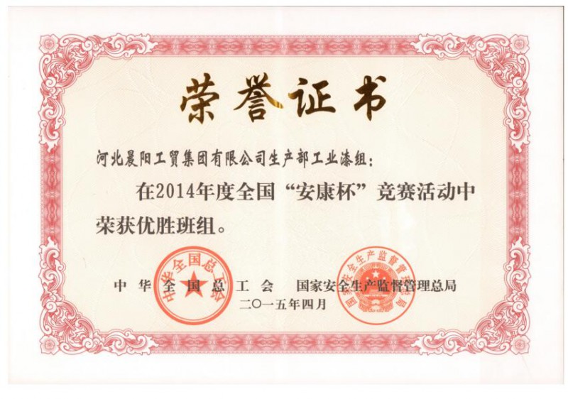 近日,河北晨陽(yáng)工貿(mào)集團(tuán)有限公司工業(yè)漆組被中華全國(guó)總工會(huì)和國(guó)家安全生產(chǎn)監(jiān)督管理總局聯(lián)合授予2014年度全國(guó)“安康杯”競(jìng)賽優(yōu)勝班組。